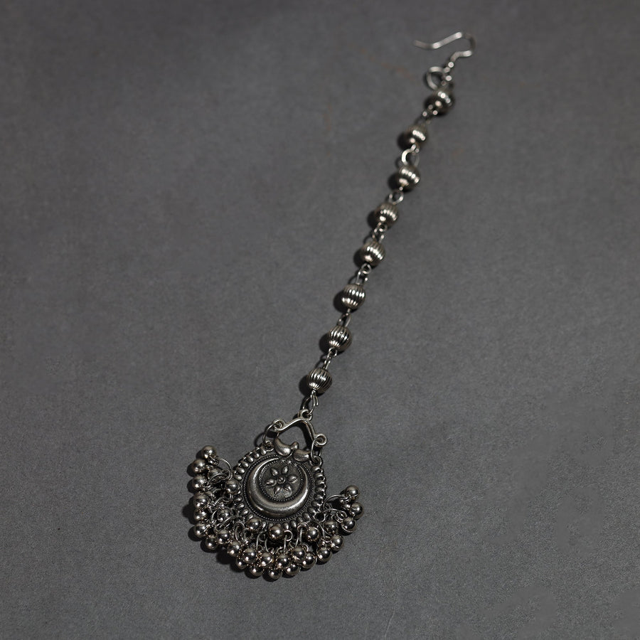 | Material | Handcrafted antique-finish maang tikka, made of high-quality oxidised white metal with a rustic shine effect. Perfect for adding a touch of elegance to any outfit, maang tikka's intricate design and vintage charm make it ideal for both casual wear and special occasions. |
