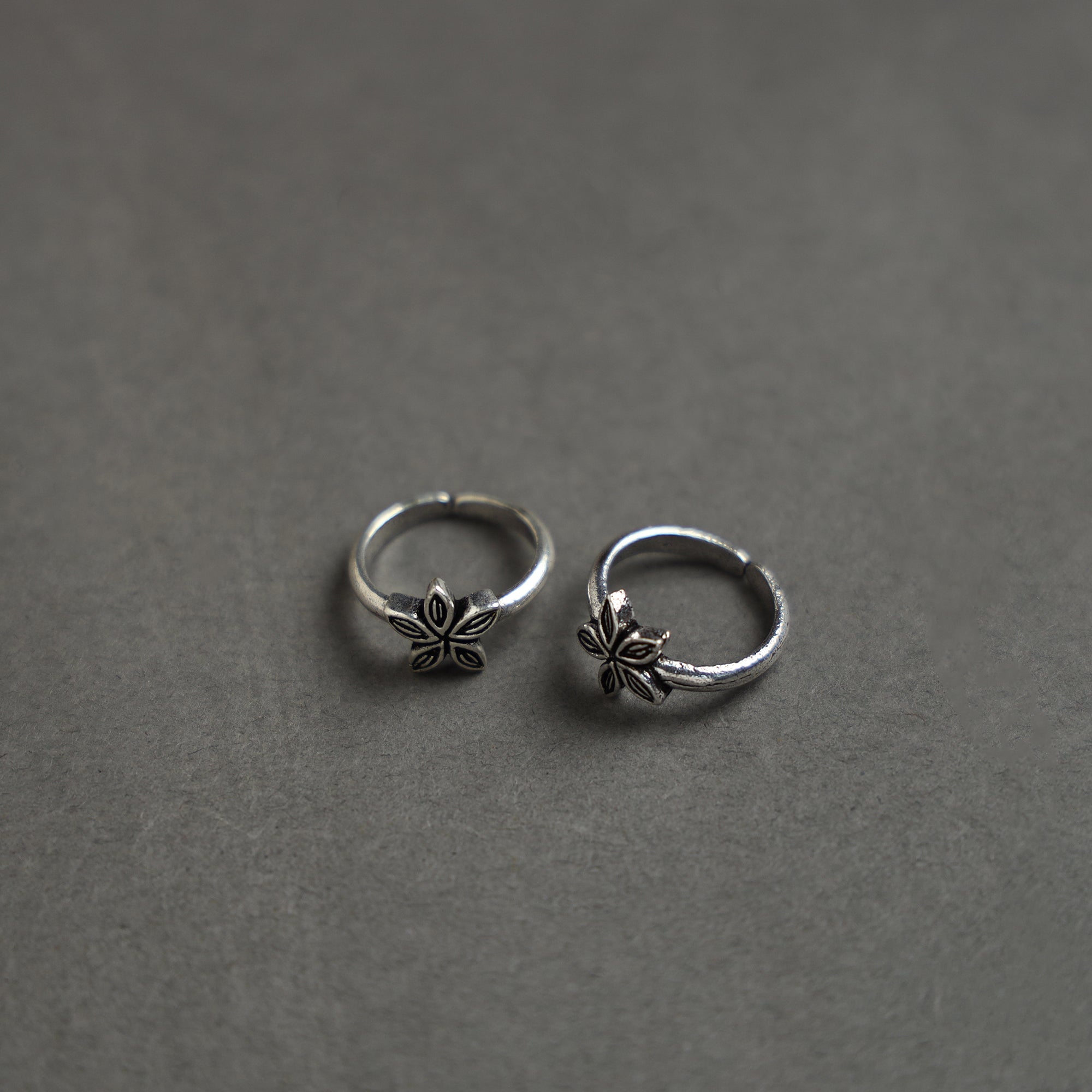 Handcrafted grey antique-finish toe ring, made of high-quality oxidised white metal with a rustic shine effect. Perfect for adding a touch of elegance to any outfit, toe ring's intricate design and vintage charm make it ideal for both casual wear and special occasions.