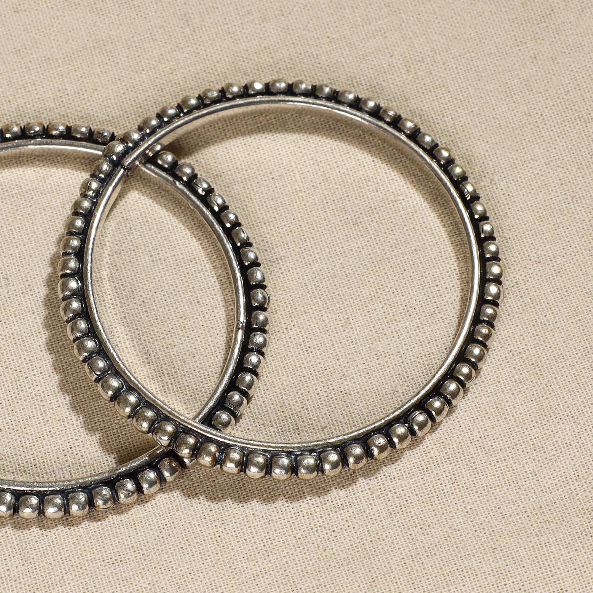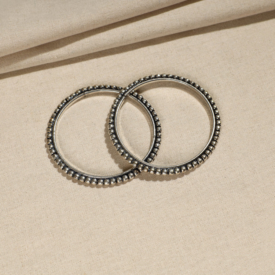 Handcrafted antique-finish bangle, made of high-quality oxidised white metal with a rustic shine effect. Perfect for adding a touch of elegance to any outfit, this bangle's intricate design and vintage charm make it ideal for both casual wear and special occasions.