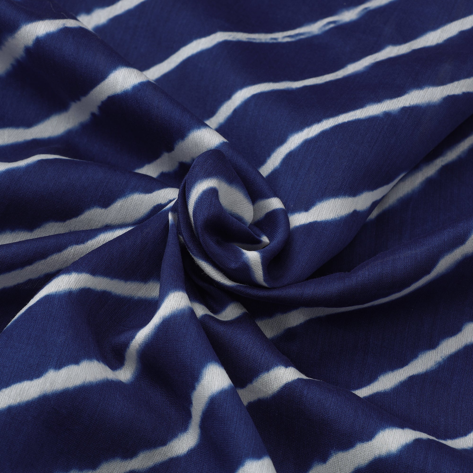 Fine quality leheriya tie-dye chanderi silk-cotton fabric. The wavy patterns on this fabric has been dyed using leheriya tie & dye technique through traditional process by master artisan family of Badshah Miyan from the state of Rajasthan. Chanderi silks are known for its gossamer looks and amazing feel.