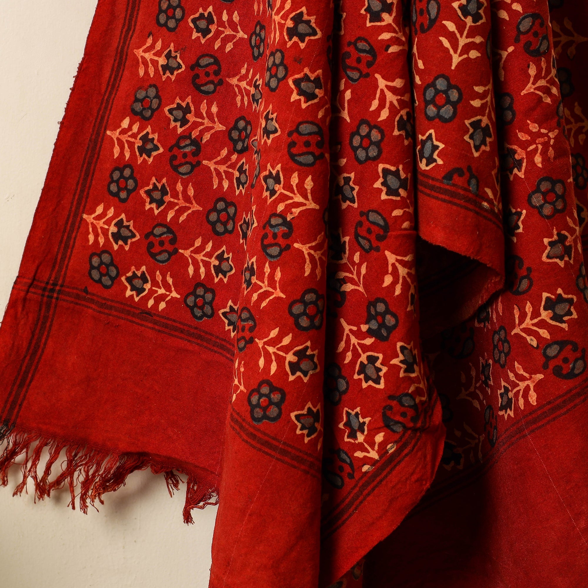 • Red Block Print Cotton Ajrakh Handloom Towel