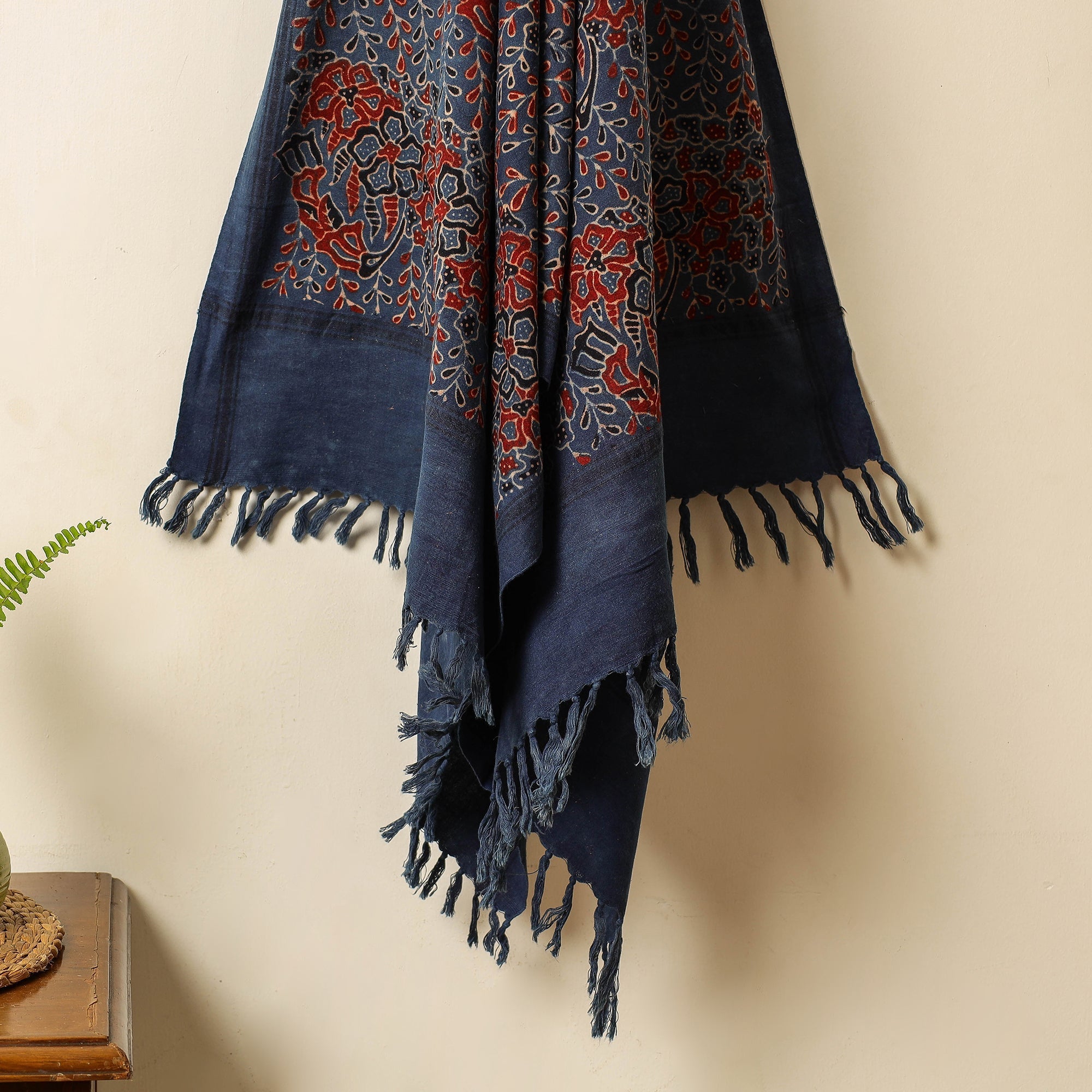 This lightweight absorbent blue block print cotton ajrakh handloom towel is crafted from natural-dyed cotton with intricate block prints. Eco-friendly and durable its perfect for daily use whether at home or on the go. Designed with functionality and sustainability in mind this towel ensures comfort and style in your everyday essentials.