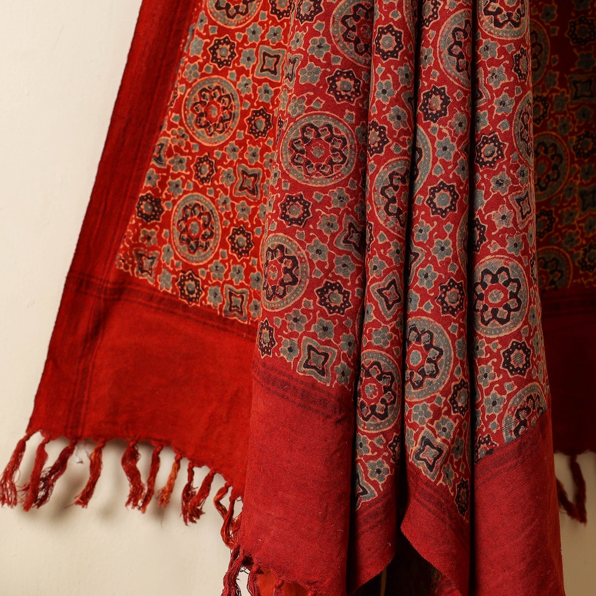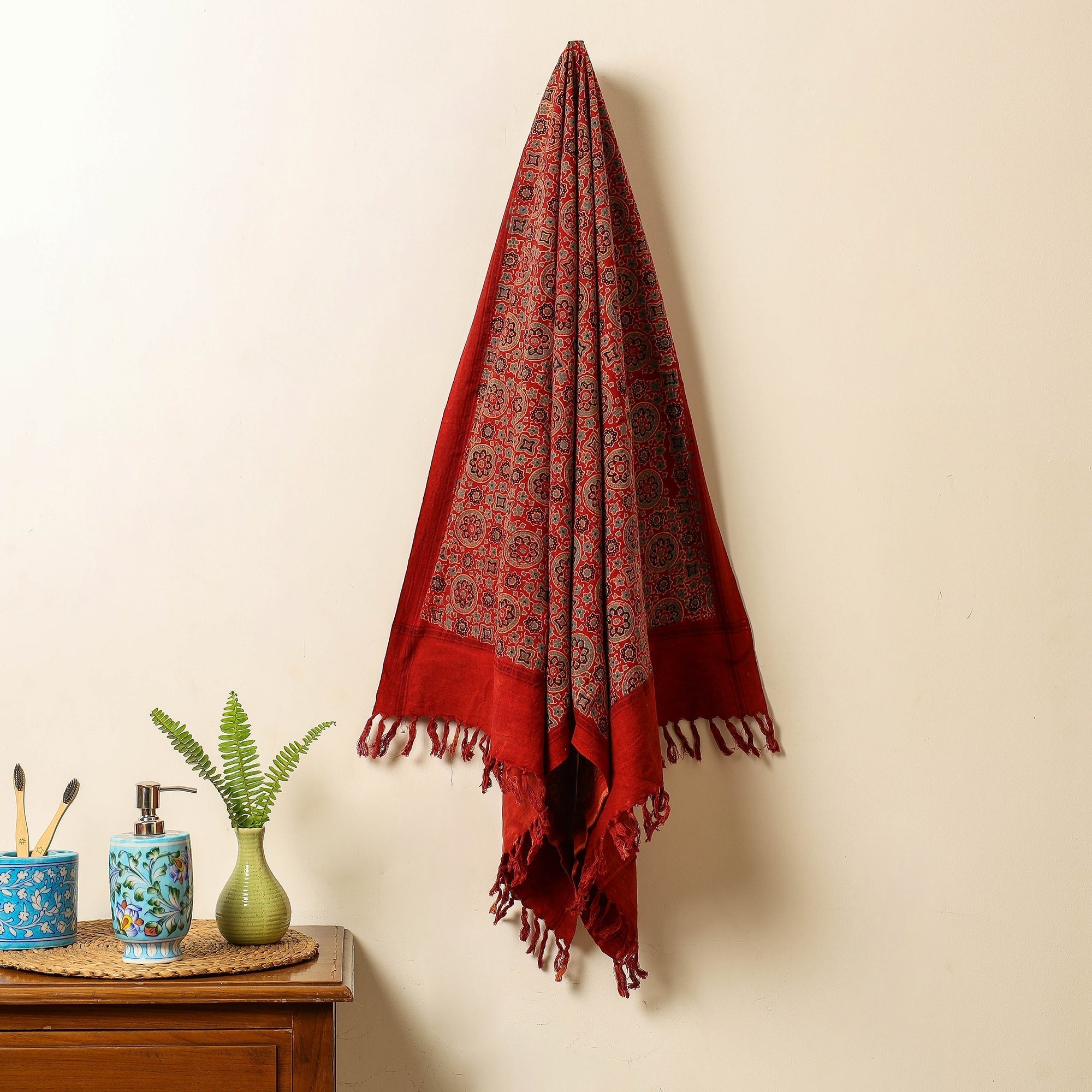 Red - Ajrakh Hand Block Print Natural Dyed Cotton Handloom Towel 38