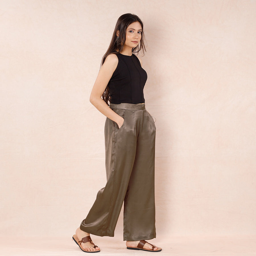 Feel and look beautiful in this modal silk plain elasticated casual palazzo with side pockets, made of fine quality silk. This silk palazzo makes you feel comfortable and stylish all day long. This palazzo is perfect for your daily outings. Modal silk is a soft, shiny and highly lustrous fabric, achieved through interlacing modal fibers and silk yarns. it has opulence of silk and the comfort of cotton modal is a fine and soft textured weave.