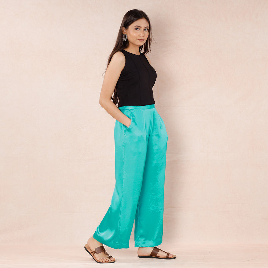Feel and look beautiful in this modal silk plain elasticated casual palazzo with side pockets, made of fine quality silk. This silk palazzo makes you feel comfortable and stylish all day long. This palazzo is perfect for your daily outings. Modal silk is a soft, shiny and highly lustrous fabric, achieved through interlacing modal fibers and silk yarns. it has opulence of silk and the comfort of cotton modal is a fine and soft textured weave.