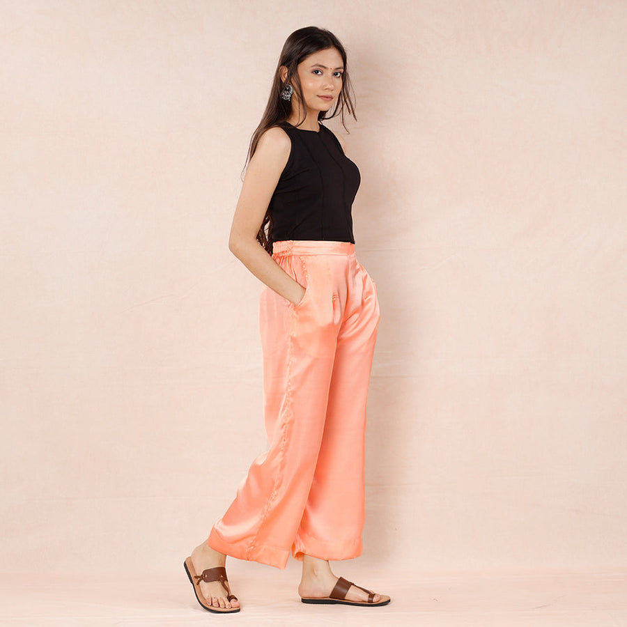 Feel and look beautiful in this modal silk plain elasticated casual palazzo with side pockets, made of fine quality silk. This silk palazzo makes you feel comfortable and stylish all day long. This palazzo is perfect for your daily outings. Modal silk is a soft, shiny and highly lustrous fabric, achieved through interlacing modal fibers and silk yarns. it has opulence of silk and the comfort of cotton modal is a fine and soft textured weave.