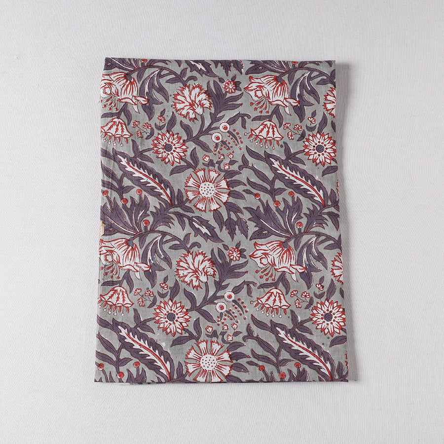 Fine quality grey sanganeri block printing cotton precut fabric. Sanganeri is a hand-block printing technique originating from Sanganer, a village in the southern part of Jaipur, Rajasthan. Bleed free VAT dyes used.