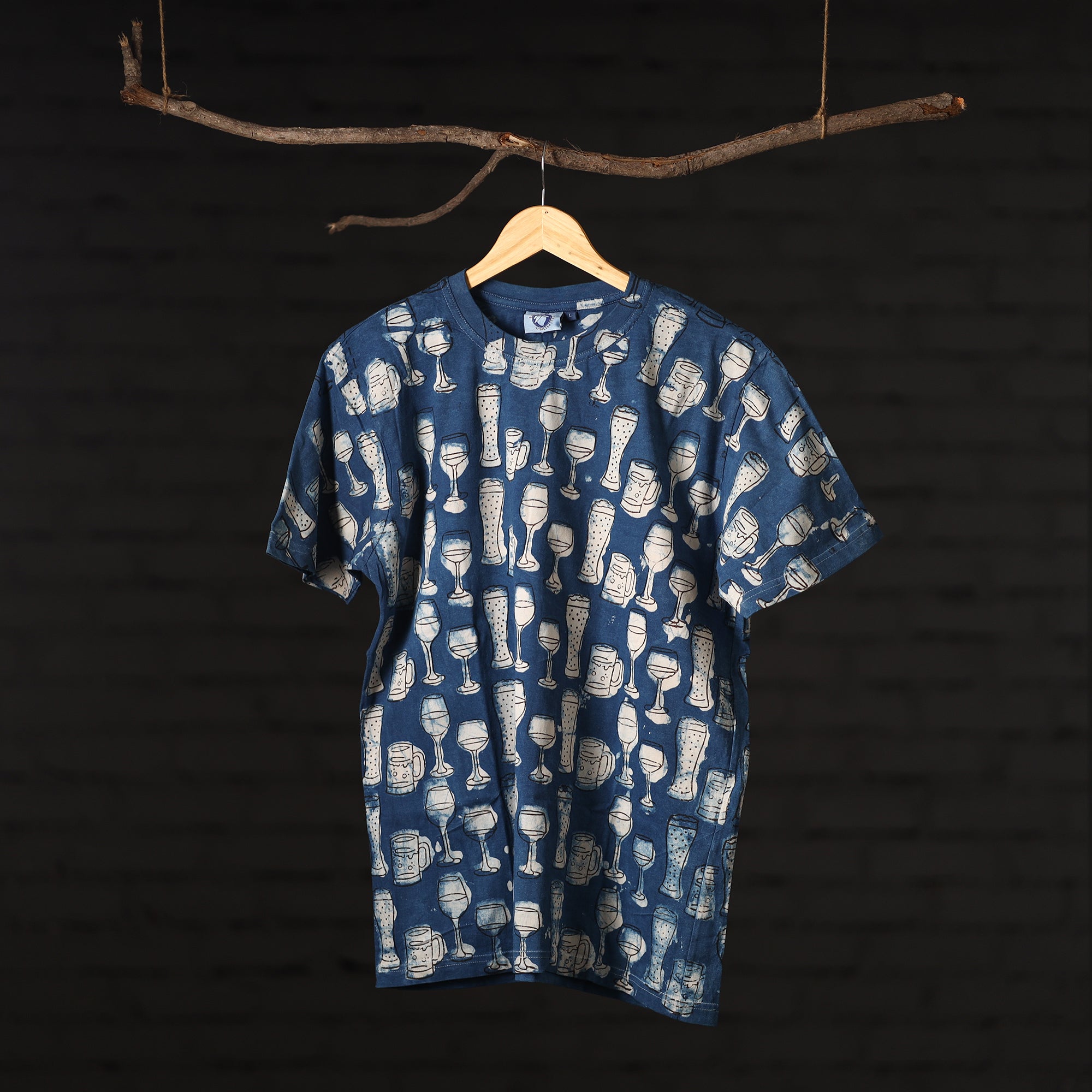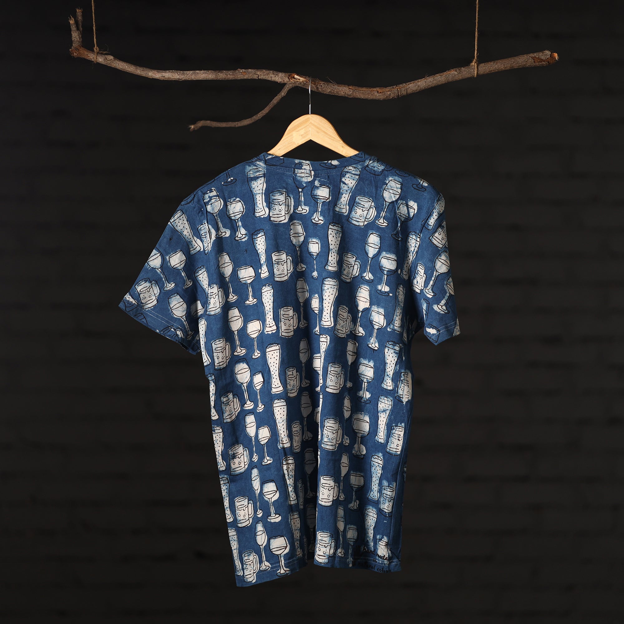 Pure cotton, natural dyed, hand block printed unisex round neck t-shirt. Contemporary designs made through traditional processes, by skilled fourth generation textile printers in Rajasthan. This slow fashion, hand block printed cotton t-shirt brings back the love for traditional skills, with a modern aesthetic and design.