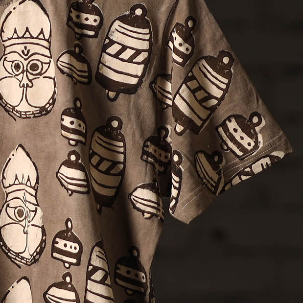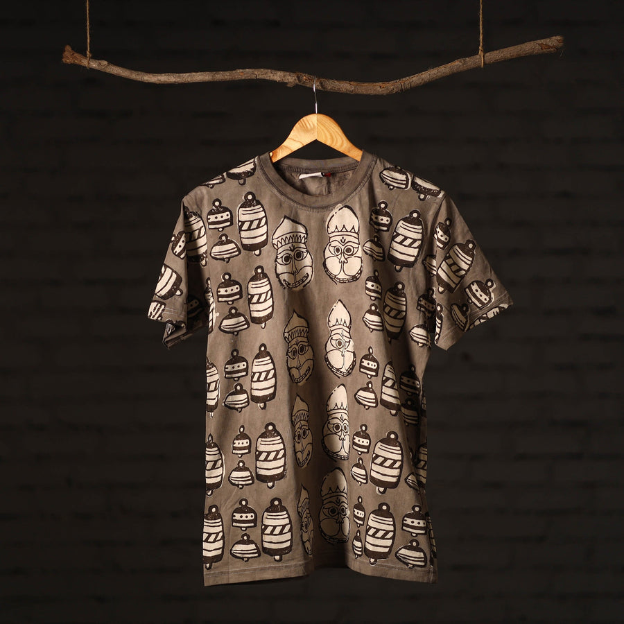 Pure cotton, natural dyed, hand block printed unisex round neck t-shirt. Contemporary designs made through traditional processes, by skilled fourth generation textile printers in Rajasthan. This slow fashion, hand block printed cotton t-shirt brings back the love for traditional skills, with a modern aesthetic and design.