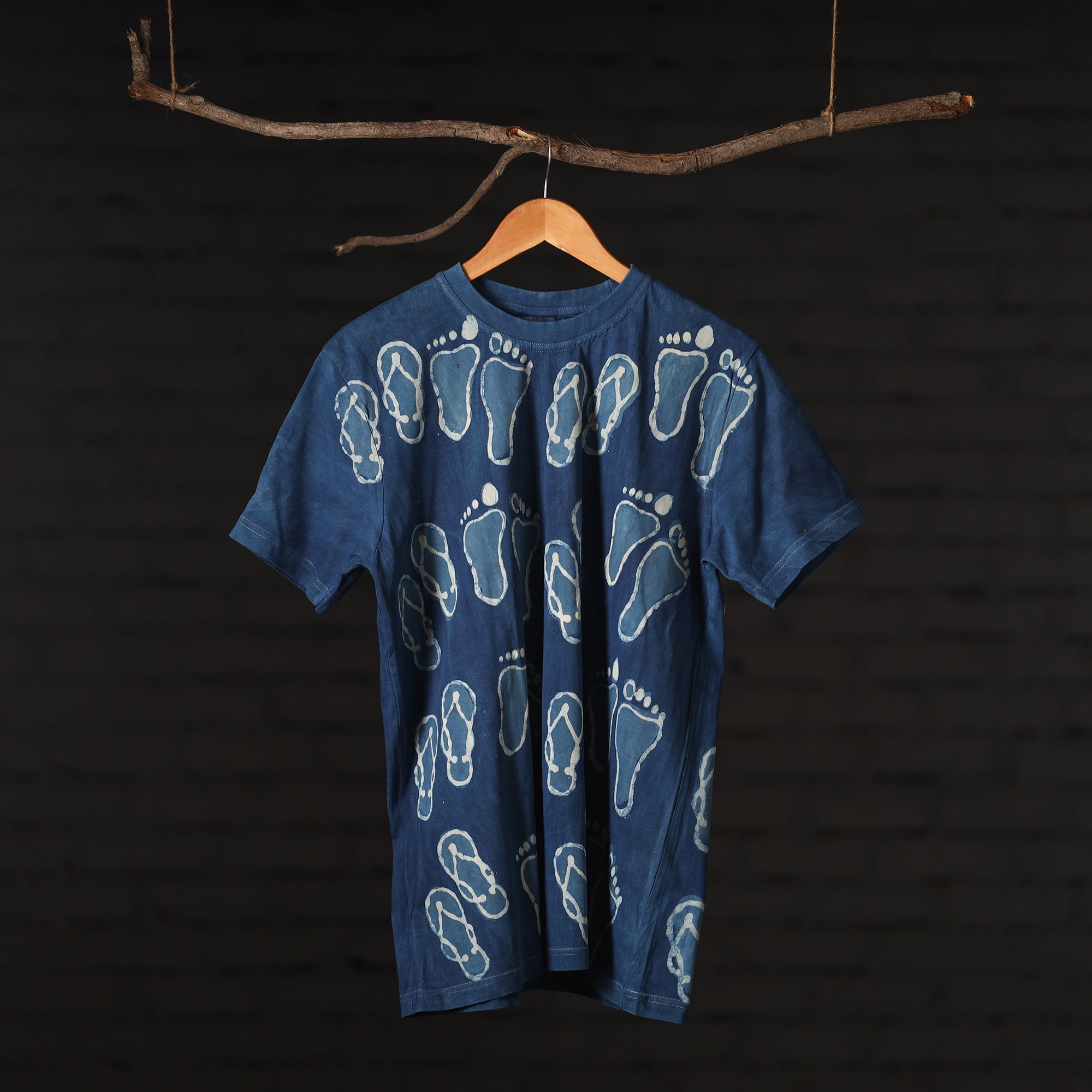 Pure cotton, natural dyed, hand block printed unisex round neck t-shirt. Contemporary designs made through traditional processes, by skilled fourth generation textile printers in Rajasthan. This slow fashion, hand block printed cotton t-shirt brings back the love for traditional skills, with a modern aesthetic and design.