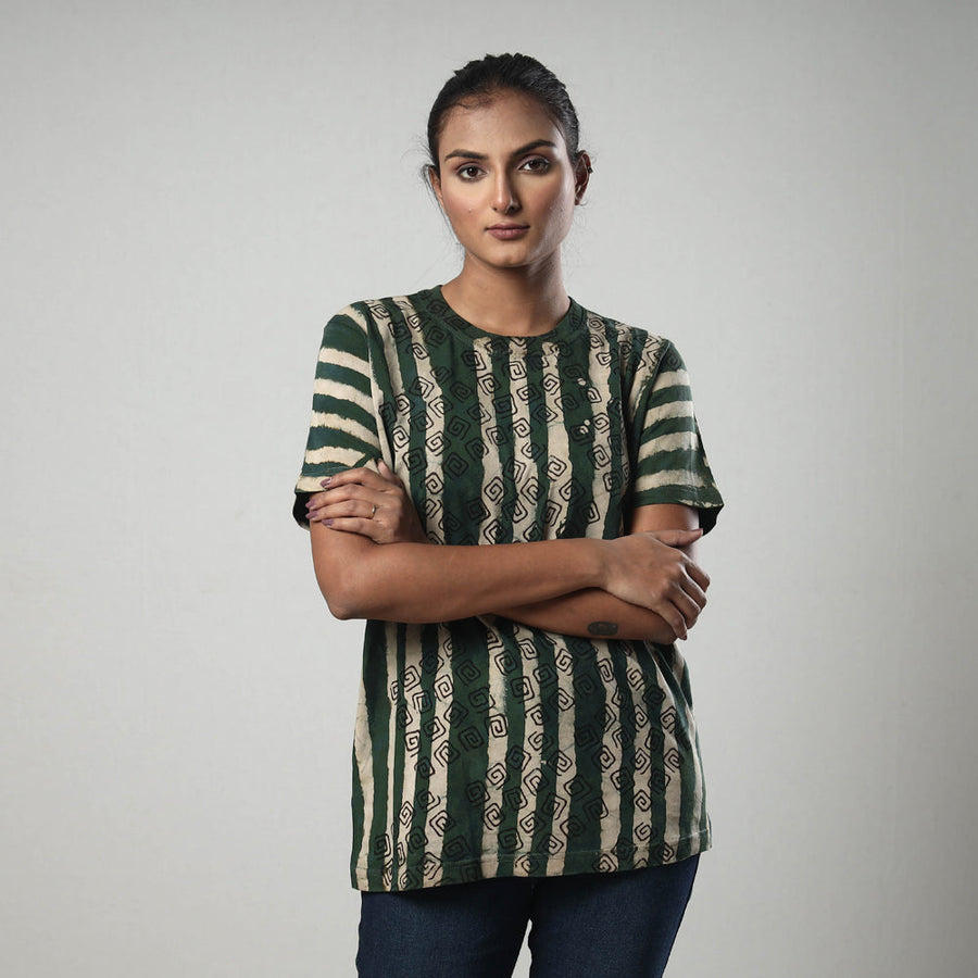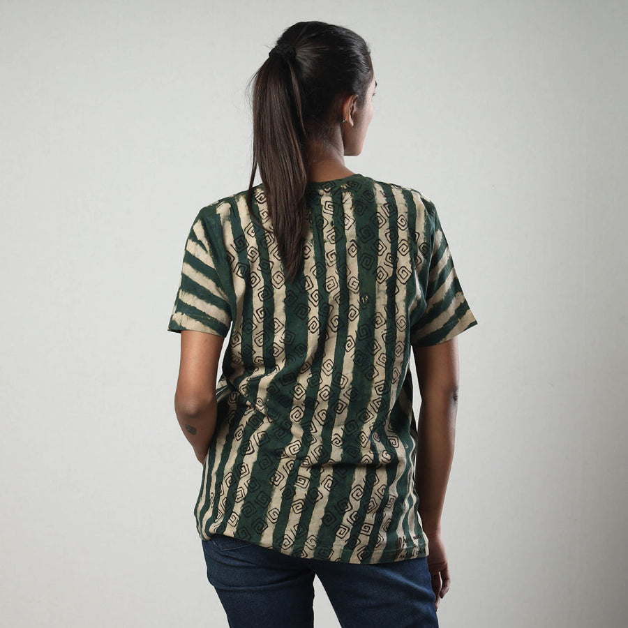 Pure cotton, natural dyed, hand block printed unisex round neck t-shirt. Contemporary designs made through traditional processes, by skilled fourth generation textile printers in Rajasthan. This slow fashion, hand block printed cotton t-shirt brings back the love for traditional skills, with a modern aesthetic and design.