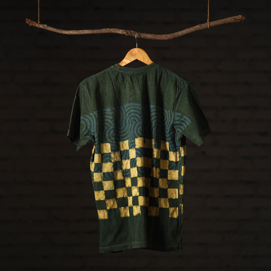 Pure cotton, natural dyed, hand block printed unisex round neck t-shirt. Contemporary designs made through traditional processes, by skilled fourth generation textile printers in Rajasthan. This slow fashion, hand block printed cotton t-shirt brings back the love for traditional skills, with a modern aesthetic and design.