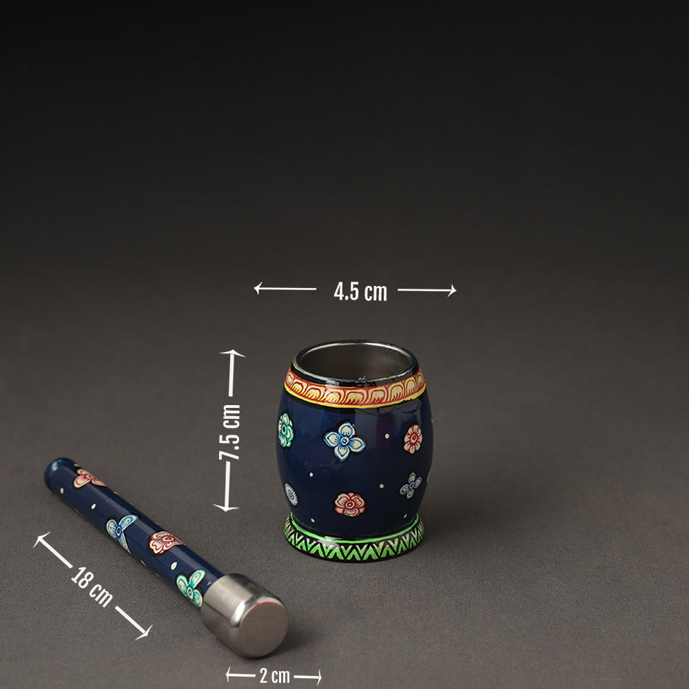 | Size | Mortar : Length - 4.5 cm, Width - 4.5 cm, Height - 7.5 cm, Pestle : Length - 18 cm, Width - 2 cm. |