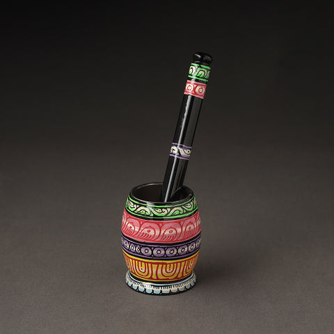 | Size | Mortar : Length - 4.5 cm, Width - 4.5 cm, Height - 7.5 cm, Pestle : Length - 18 cm, Width - 2 cm. |