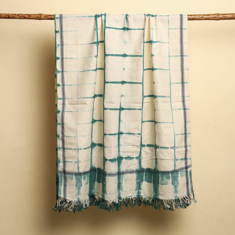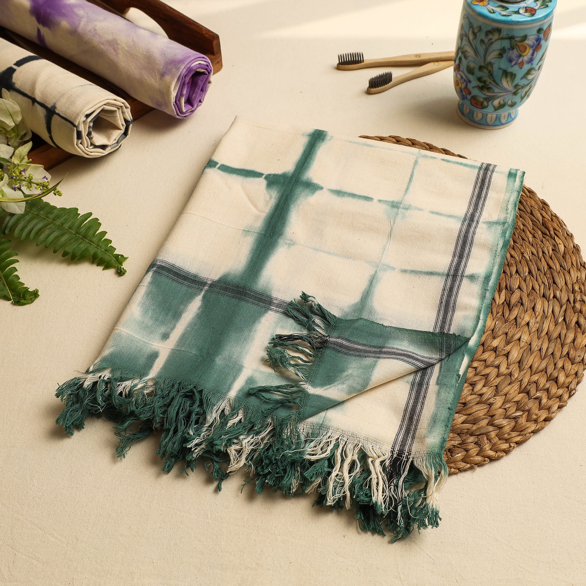 Fine quality shibori tie-dye pure cotton towel from Rajasthan. This towel is hand dyed using shibori tie and dye technique in which the fabric is tied using clamp or stitches in the required design and the pattern is dyed.Bleed free VAT dyes used.
