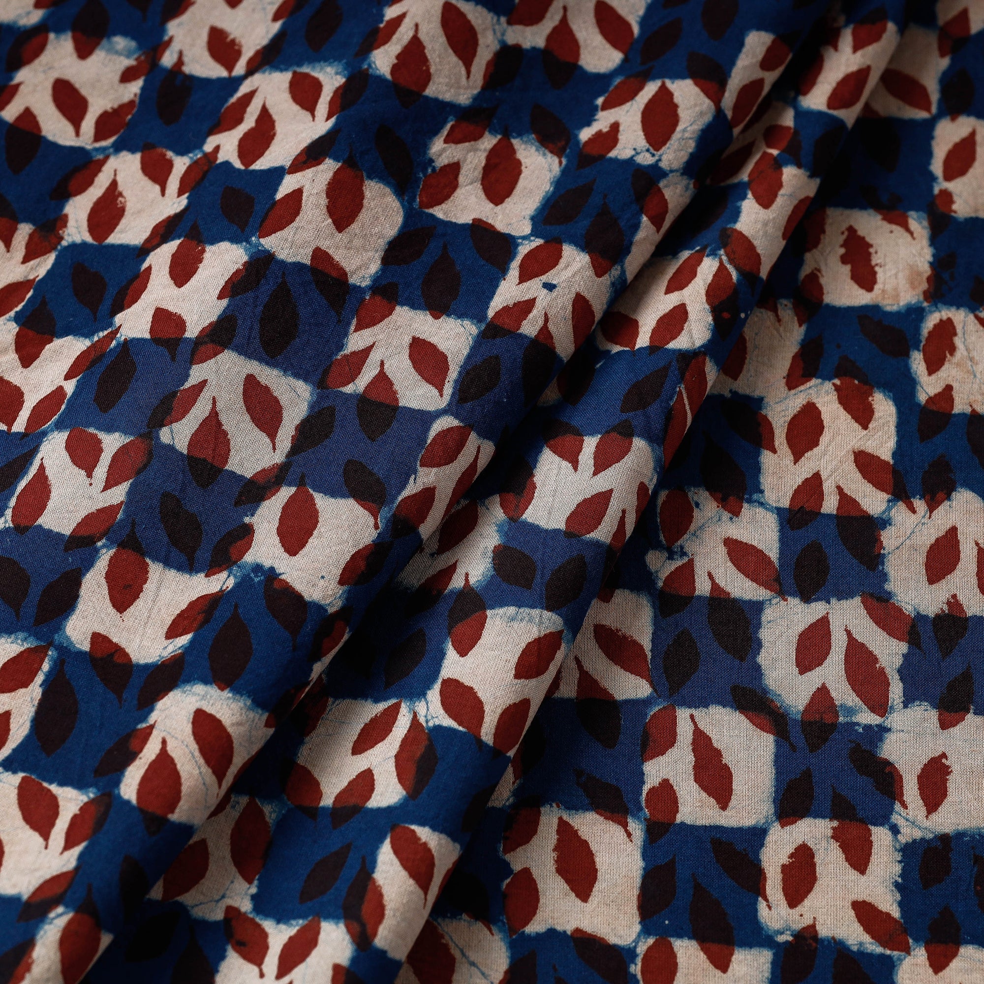 Fine quality traditional design pipad block printed cotton fabric using natural dyes through traditional process by Chhipa Azhar practiced in Pipar, Rajasthan.