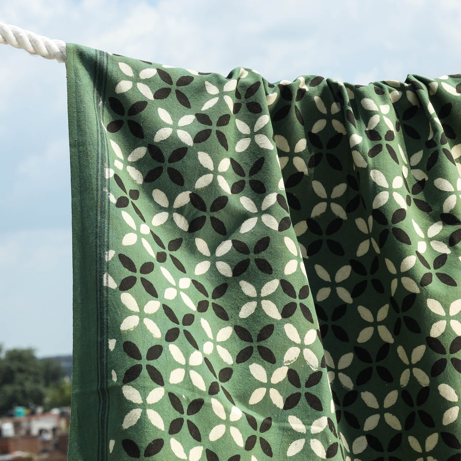 Fine quality pipad hand block printed pure handloom cotton towel, made using natural dyes through traditional process by master artisan Chhipa Azhar practiced in Pipar, Rajasthan.