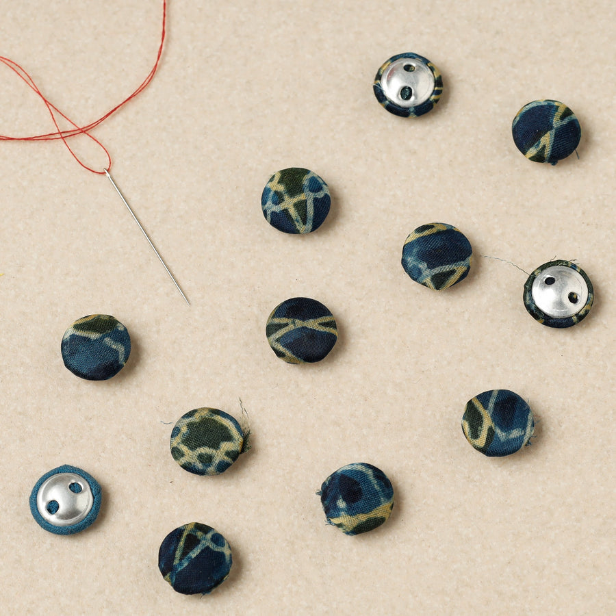 The fabric is sewn on silk thread buttons. The material quality of these buttons is top-notch, sturdy, washable and durable. The silk thread used for the buttons is 100% pure and no synthetic fabrics are used in the blend.