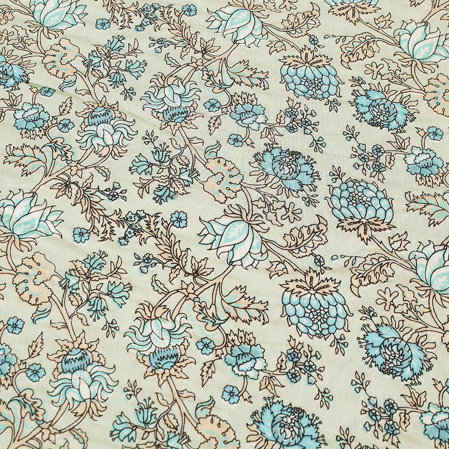 Blue - Cotton Hand Block Sanganeri Print Fabric 07