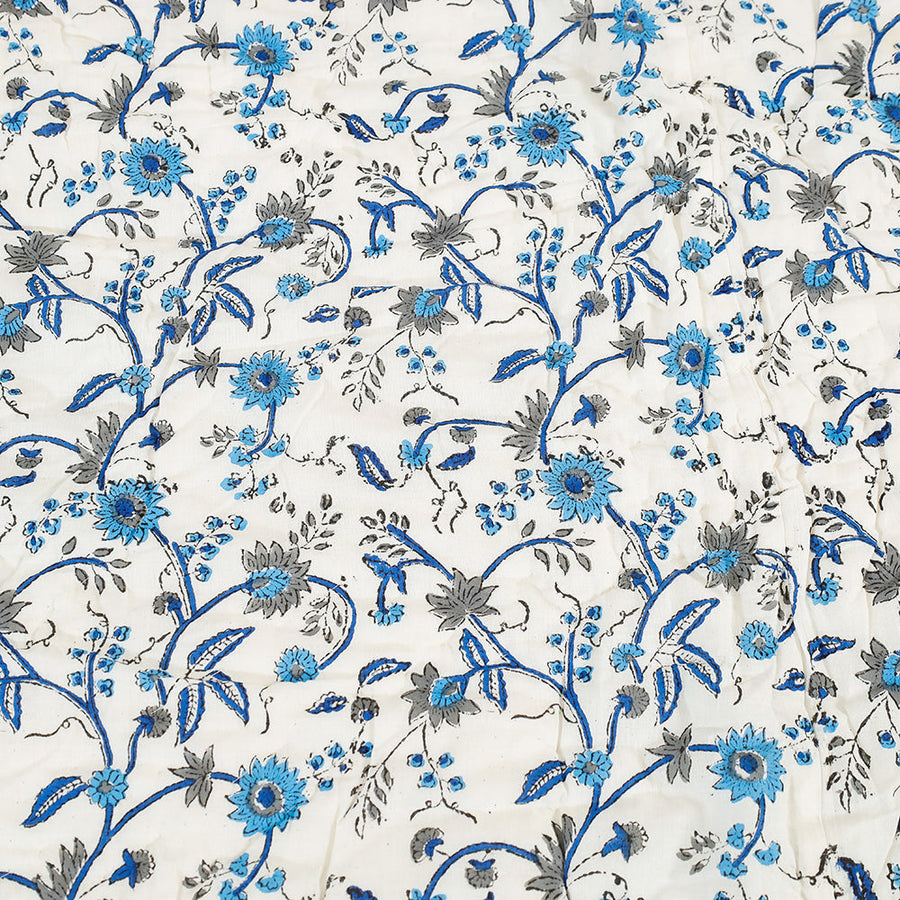 Blue - Cotton Hand Block Sanganeri Print Fabric 07