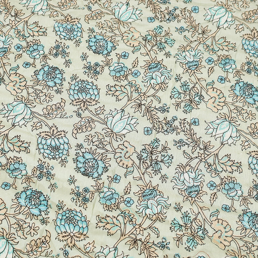 Green - Hand Block Print Slub Cotton Sanganeri Fabric 12