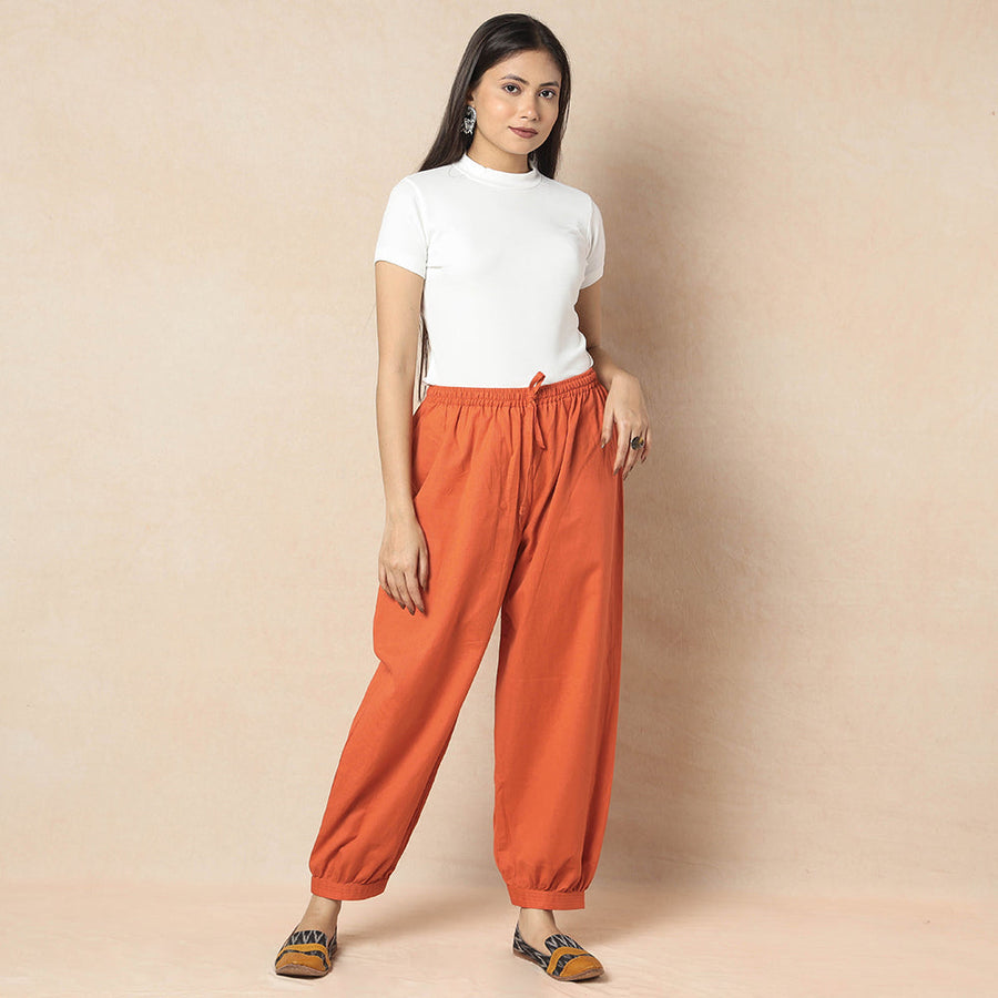 Feel and look beautiful in this flex cotton plain elasticated waistband casual pant with a drawstring waist. This cotton pant makes you feel comfortable and stylish all day long. This pant is perfect for your daily outings.