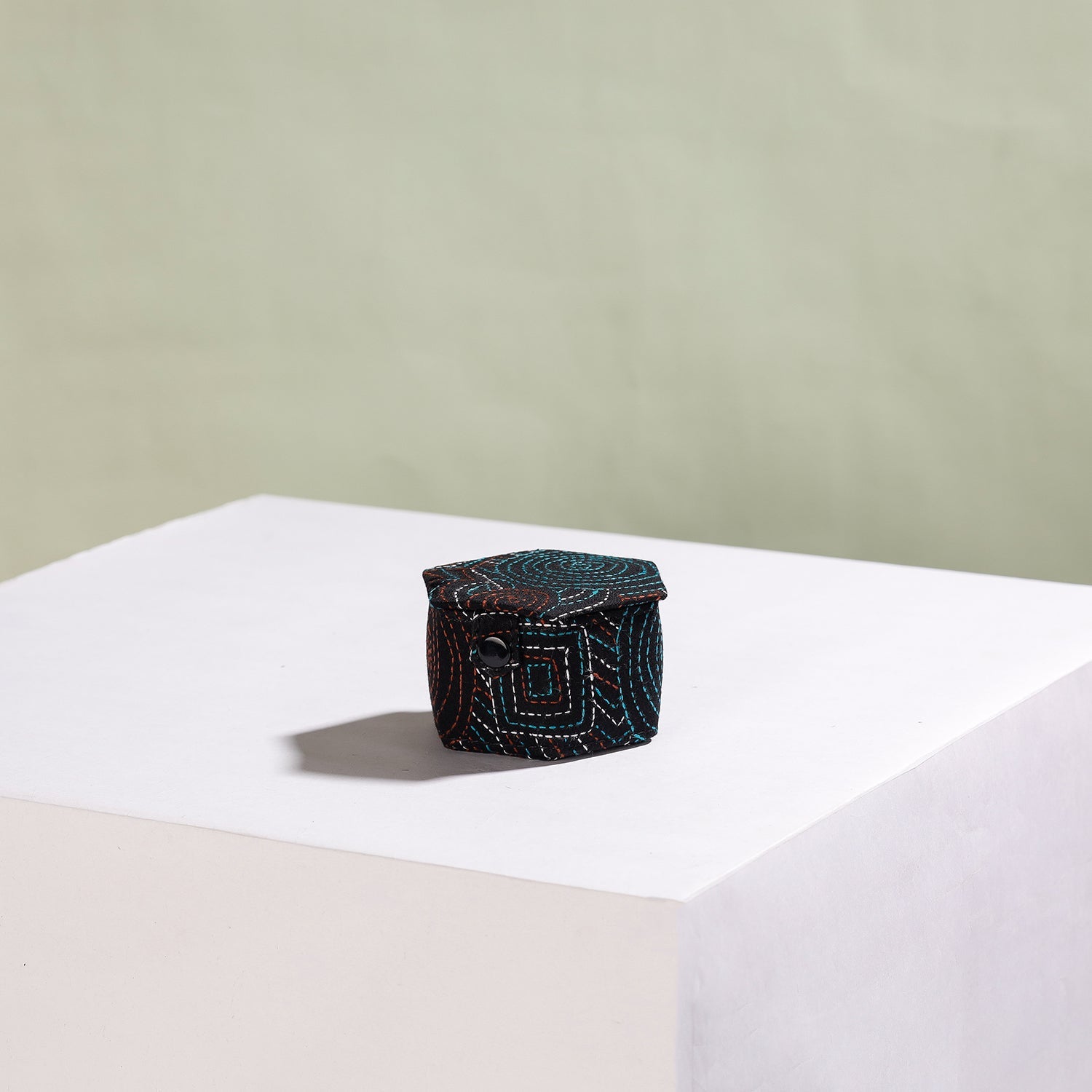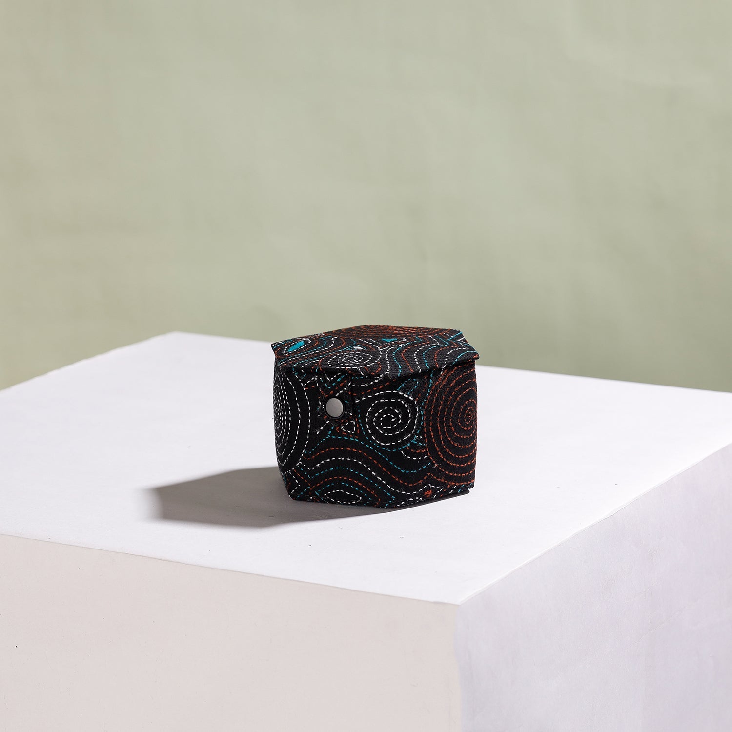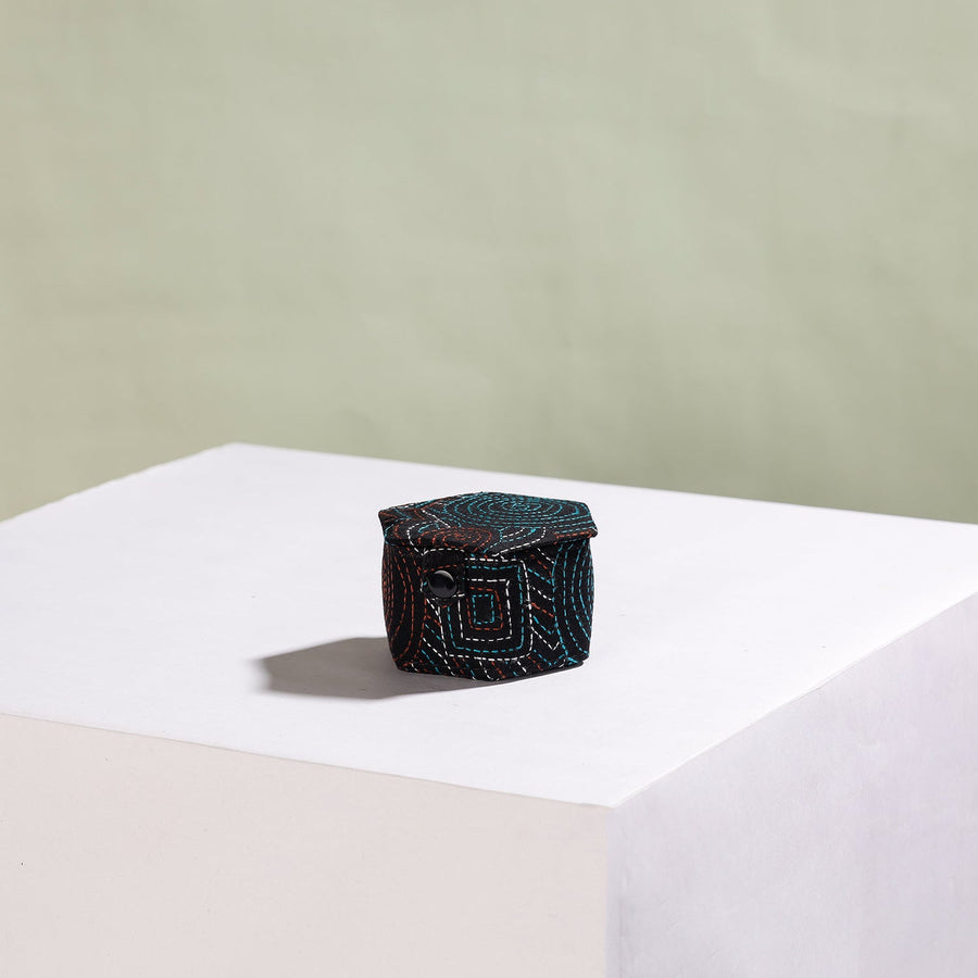 Fine quality, black handcrafted Kantha-work jewellery storage boxes from West Bengal. Made from hardboard, the box is lined with kantha-work fabric outside and soft velvet inside. It has ample space to keep most of your jewellery or other small utility items, and it protects your beloved jewellery from scratch and dust.