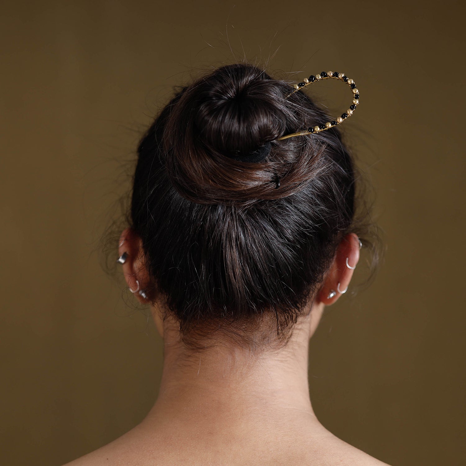 Yellow handcrafted juda pin by Asalkaar from West Bengal, made from solid brass metal. Brass is a corrosion-resistant alloy, allowing it to maintain its appearance even with regular use. Designed to secure and style hair elegantly, this lightweight yet sturdy juda pin is perfect for daily wear, festive occasions, or gifting.