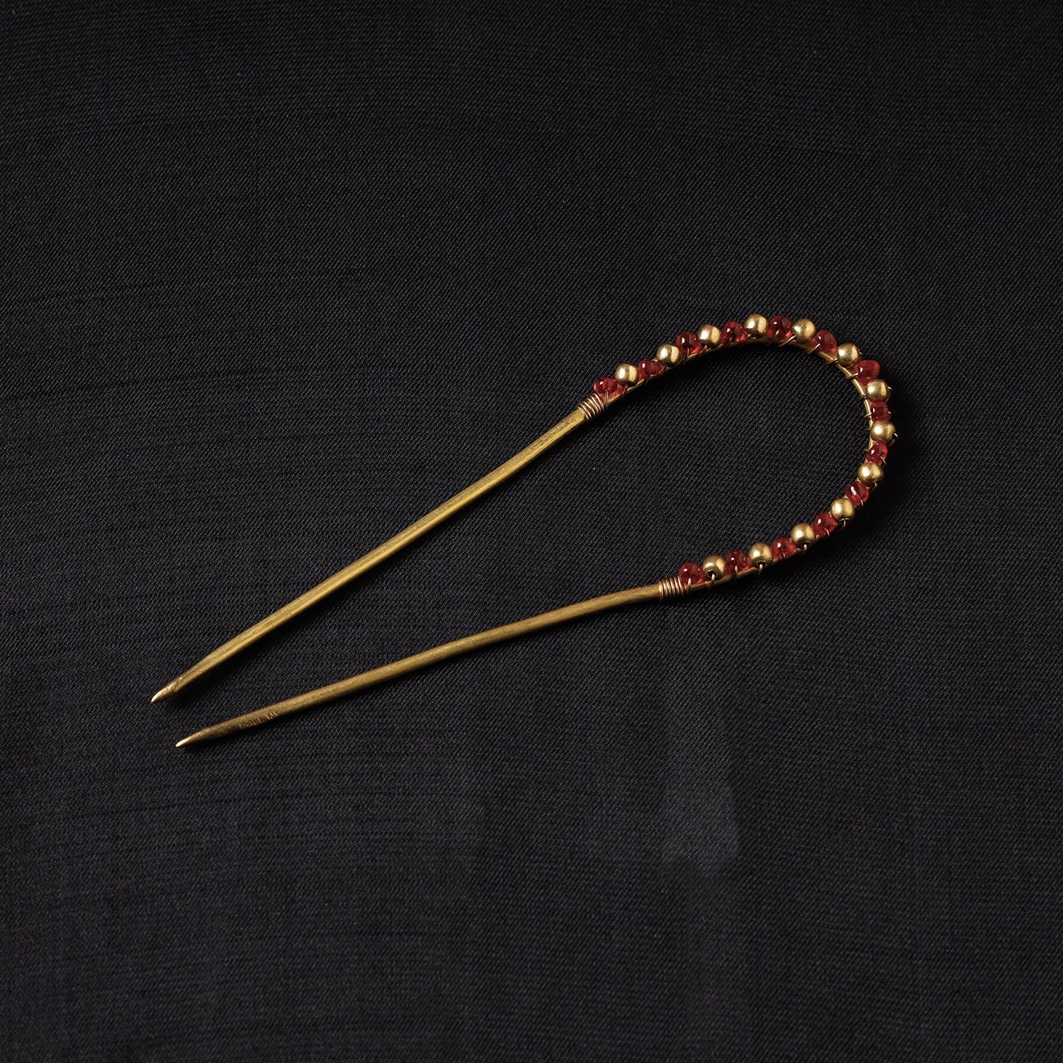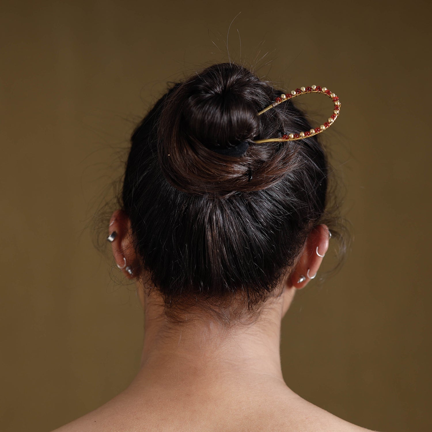 Yellow handcrafted juda pin by Asalkaar from West Bengal, made from solid brass metal. Brass is a corrosion-resistant alloy, allowing it to maintain its appearance even with regular use. Designed to secure and style hair elegantly, this lightweight yet sturdy juda pin is perfect for daily wear, festive occasions, or gifting.