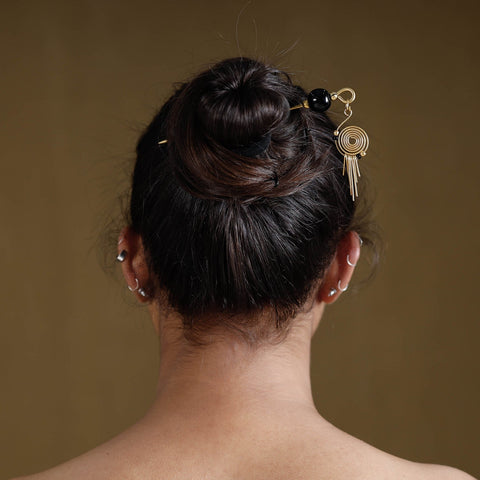 Yellow handcrafted juda pin by Asalkaar from West Bengal, made from solid brass metal. Brass is a corrosion-resistant alloy, allowing it to maintain its appearance even with regular use. Designed to secure and style hair elegantly, this lightweight yet sturdy juda pin is perfect for daily wear, festive occasions, or gifting.
