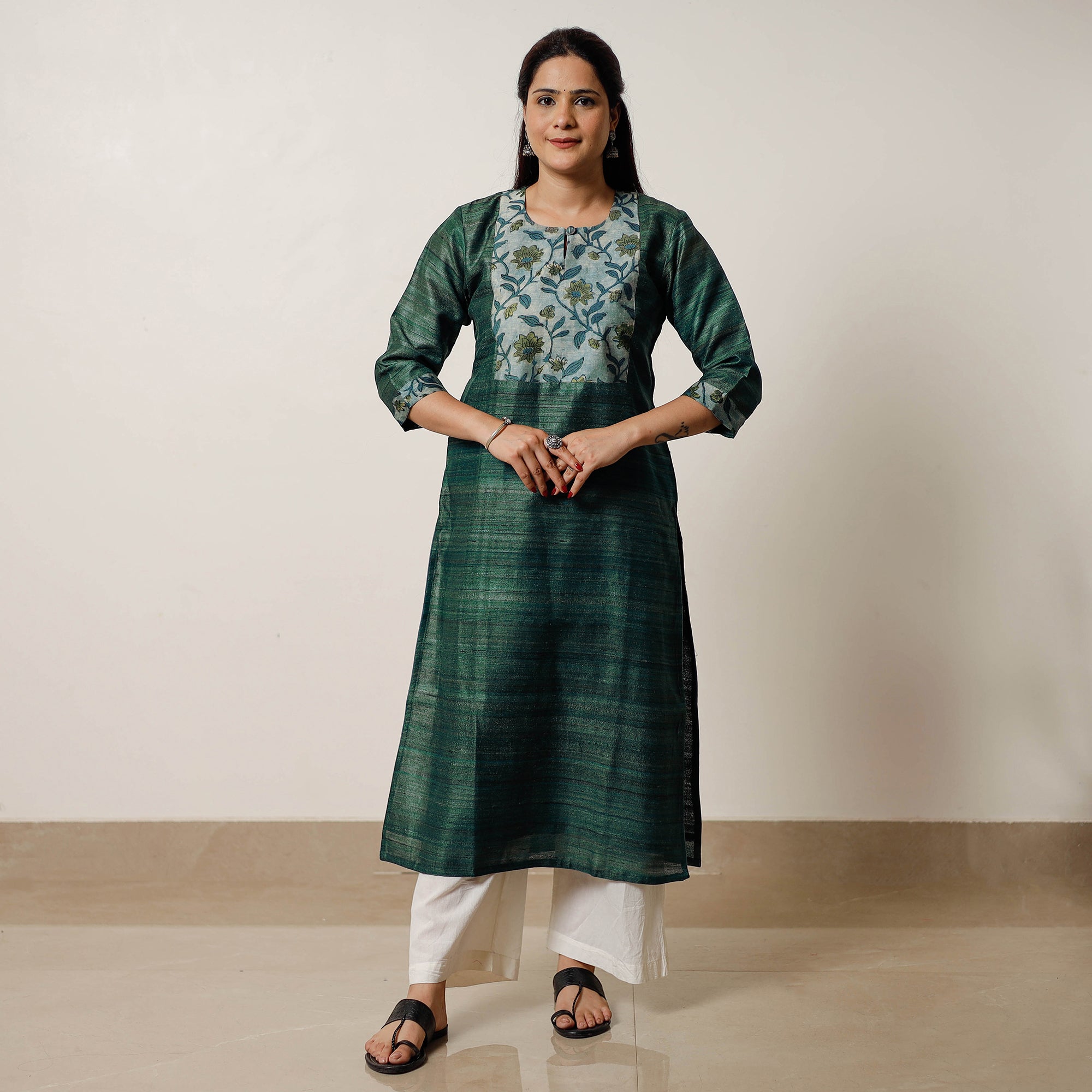 {"id":7483242381507,"title":"Dark Green Bhagalpuri Handwoven Desi Tussar Silk Long Kurta","handle":"2022-774-1-33-pure-desi-tussar-silk-long-kurta","description":"\u003ctable class=\"gmail-mce-item-table\" width=\"100%\"\u003e\n\u003ctbody\u003e\n\u003ctr\u003e\n\u003ctd\u003e\u003cspan style=\"color: #f1c232;\"\u003e\u003ca style=\"color: #f1c232;\" href=\"\/collections\/all#erid48985462\" target=\"_blank\"\u003eShipping\u003c\/a\u003e\u003c\/span\u003e\u003c\/td\u003e\n\u003ctd\u003e\n\u003cspan\u003eDispatched in 7-10 working days as this product is custom made once your order is confirmed. \u003c\/span\u003e\u003ca href=\"\/pages\/returns-cancellation\" target=\"_blank\" title=\"Returns \u0026amp; refunds | hassle-free cancellations l itokri.com\" aria-label=\"Returns \u0026amp; refunds | hassle-free cancellations l itokri.com\"\u003eReturns accepted\u003c\/a\u003e\u003cspan\u003e \u003c\/span\u003e\u003cspan\u003ewithin 7 days of delivery.\u003c\/span\u003e\n\u003c\/td\u003e\n\u003c\/tr\u003e\n\u003ctr\u003e\n\u003ctd\u003e\u003cspan style=\"color: #f1c232;\"\u003eWeight\u003c\/span\u003e\u003c\/td\u003e\n\u003ctd\u003e150 grams (approximately).\u003c\/td\u003e\n\u003c\/tr\u003e\n\u003ctr\u003e\n\u003ctd\u003e\u003cspan style=\"color: #f1c232;\" color=\"#f1c232\"\u003eSize\u003c\/span\u003e\u003c\/td\u003e\n\u003ctd\u003e\n\u003cul\u003e\n\u003cli\u003eSIZE S : Length - 117 cm | Chest - 97 cm | Waist - 89 cm | Shoulder - 39 cm | Arm Hole - 41 cm | Hip - 104 cm | Sleeves Length - 41 cm.\u003cbr\u003e\n\u003c\/li\u003e\n\u003c\/ul\u003e\n\u003cul\u003e\n\u003cli\u003eSIZE M : Length - 117 cm | Chest - 102 cm | Waist - 92 cm | Shoulder - 41 cm | Arm Hole - 43 cm | Hip - 109 cm | Sleeves Length - 41 cm.\u003c\/li\u003e\n\u003c\/ul\u003e\n\u003cul\u003e\n\u003cli\u003eSIZE L : Length - 117 cm | Chest - 107 cm | Waist - 94 cm | Shoulder - 41 cm | Arm Hole - 43 cm | Hip - 117 cm | Sleeves Length - 41 cm.\u003c\/li\u003e\n\u003c\/ul\u003e\n\u003cul\u003e\n\u003cli\u003eSIZE XL : Length - 117 cm | Chest - 114 cm | Waist - 102 cm | Shoulder - 41 cm | Arm Hole - 43 cm | Hip - 125 cm | Sleeves Length - 41 cm.\u003c\/li\u003e\n\u003c\/ul\u003e\n\u003cul\u003e\n\u003cli\u003eSIZE 2XL : Length - 117 cm | Chest - 119 cm | Waist - 107 cm | Shoulder - 43 cm | Arm Hole - 46 cm | Hip - 130 cm | Sleeves Length - 41 cm.\u003c\/li\u003e\n\u003c\/ul\u003e\n\u003cul\u003e\n\u003cli\u003eSIZE 3XL : Length - 117 cm | Chest - 127 cm | Waist - 112 cm | Shoulder - 43 cm | Arm Hole - 51 cm | Hip - 135 cm | Sleeves Length - 41 cm.\u003c\/li\u003e\n\u003c\/ul\u003e\n\u003cul\u003e\n\u003cli\u003eSIZE 4XL : Length - 117 cm | Chest - 132 cm | Waist - 117 cm | Shoulder - 43 cm | Arm Hole - 53 cm | Hip - 140 cm | Sleeves Length - 41 cm.\u003c\/li\u003e\n\u003c\/ul\u003e\n\u003cul\u003e\n\u003cli\u003eSIZE 5XL : Length - 117 cm | Chest - 140 cm | Waist - 122 cm | Shoulder - 43 cm | Arm Hole - 53 cm | Hip - 147 cm | Sleeves Length - 41 cm.\u003c\/li\u003e\n\u003c\/ul\u003e\n\u003c\/td\u003e\n\u003c\/tr\u003e\n\u003ctr\u003e\n\u003ctd\u003e\u003cspan style=\"color: #f1c232;\"\u003eMaterial\u003c\/span\u003e\u003c\/td\u003e\n\u003ctd\u003eLook and feel beautiful in this uniquely designed pure desi tussar silk plain long Kurta with side pocket. This silk Kurta makes you comfortable with ease all day long. This Kurta is perfect for your daily outing and for a special occasion.\u003cbr\u003e\n\u003c\/td\u003e\n\u003c\/tr\u003e\n\u003ctr\u003e\n\u003ctd\u003e\u003cspan style=\"color: #f1c232;\"\u003eCare\u003c\/span\u003e\u003c\/td\u003e\n\u003ctd\u003eDry clean only.\u003cbr\u003e\n\u003c\/td\u003e\n\u003c\/tr\u003e\n\u003ctr\u003e\n\u003ctd\u003e\u003cspan style=\"color: #f1c232;\"\u003eColour\u003c\/span\u003e\u003c\/td\u003e\n\u003ctd\u003eSlight difference in color from the visible product image is possible.\u003c\/td\u003e\n\u003c\/tr\u003e\n\u003c\/tbody\u003e\n\u003c\/table\u003e","published_at":"2022-11-16T19:09:01+05:30","created_at":"2022-11-16T15:12:35+05:30","vendor":"ITOKRI CASUALS","type":"kurtas","tags":["clearance","craft-popular-products","festive special kurtis","green","itokri casuals","kurtas","made to order","material-tussar","meta-filter-craft process-handloom","meta-filter-craft process-plain solid","plus size","primarycraft_plain-solid","sizeGuide-long-kurti-size-chart"],"price":599000,"price_min":599000,"price_max":599000,"available":true,"price_varies":false,"compare_at_price":null,"compare_at_price_min":0,"compare_at_price_max":0,"compare_at_price_varies":false,"variants":[{"id":42232608751811,"title":"S","option1":"S","option2":null,"option3":null,"sku":"COJP_JP\/KUT\/19\/5\/S","requires_shipping":true,"taxable":true,"featured_image":null,"available":true,"name":"Dark Green Bhagalpuri Handwoven Desi Tussar Silk Long Kurta - S","public_title":"S","options":["S"],"price":599000,"weight":500,"compare_at_price":null,"inventory_quantity":1,"inventory_management":"shopify","inventory_policy":"deny","barcode":null,"requires_selling_plan":false,"selling_plan_allocations":[],"quantity_rule":{"min":1,"max":null,"increment":1}},{"id":42232608784579,"title":"M","option1":"M","option2":null,"option3":null,"sku":"COJP_JP\/KUT\/19\/5\/M","requires_shipping":true,"taxable":true,"featured_image":null,"available":false,"name":"Dark Green Bhagalpuri Handwoven Desi Tussar Silk Long Kurta - M","public_title":"M","options":["M"],"price":599000,"weight":500,"compare_at_price":null,"inventory_quantity":0,"inventory_management":"shopify","inventory_policy":"deny","barcode":null,"requires_selling_plan":false,"selling_plan_allocations":[],"quantity_rule":{"min":1,"max":null,"increment":1}},{"id":42232608850115,"title":"L","option1":"L","option2":null,"option3":null,"sku":"COJP_JP\/KUT\/19\/5\/L","requires_shipping":true,"taxable":true,"featured_image":null,"available":false,"name":"Dark Green Bhagalpuri Handwoven Desi Tussar Silk Long Kurta - L","public_title":"L","options":["L"],"price":599000,"weight":500,"compare_at_price