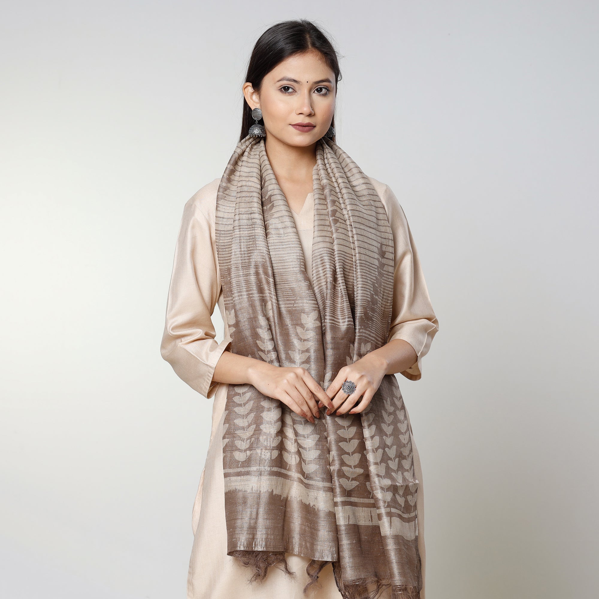 Elegant hand-crafted silk-cotton stoles that can be paired with ethnic and western clothes for a office & festive look