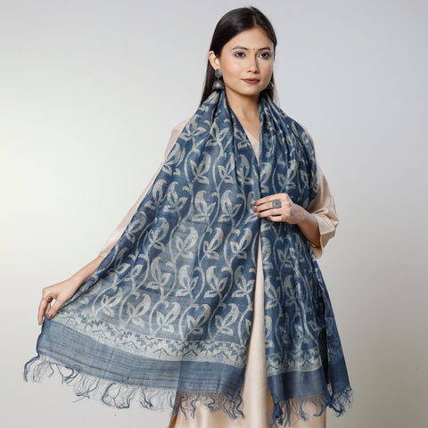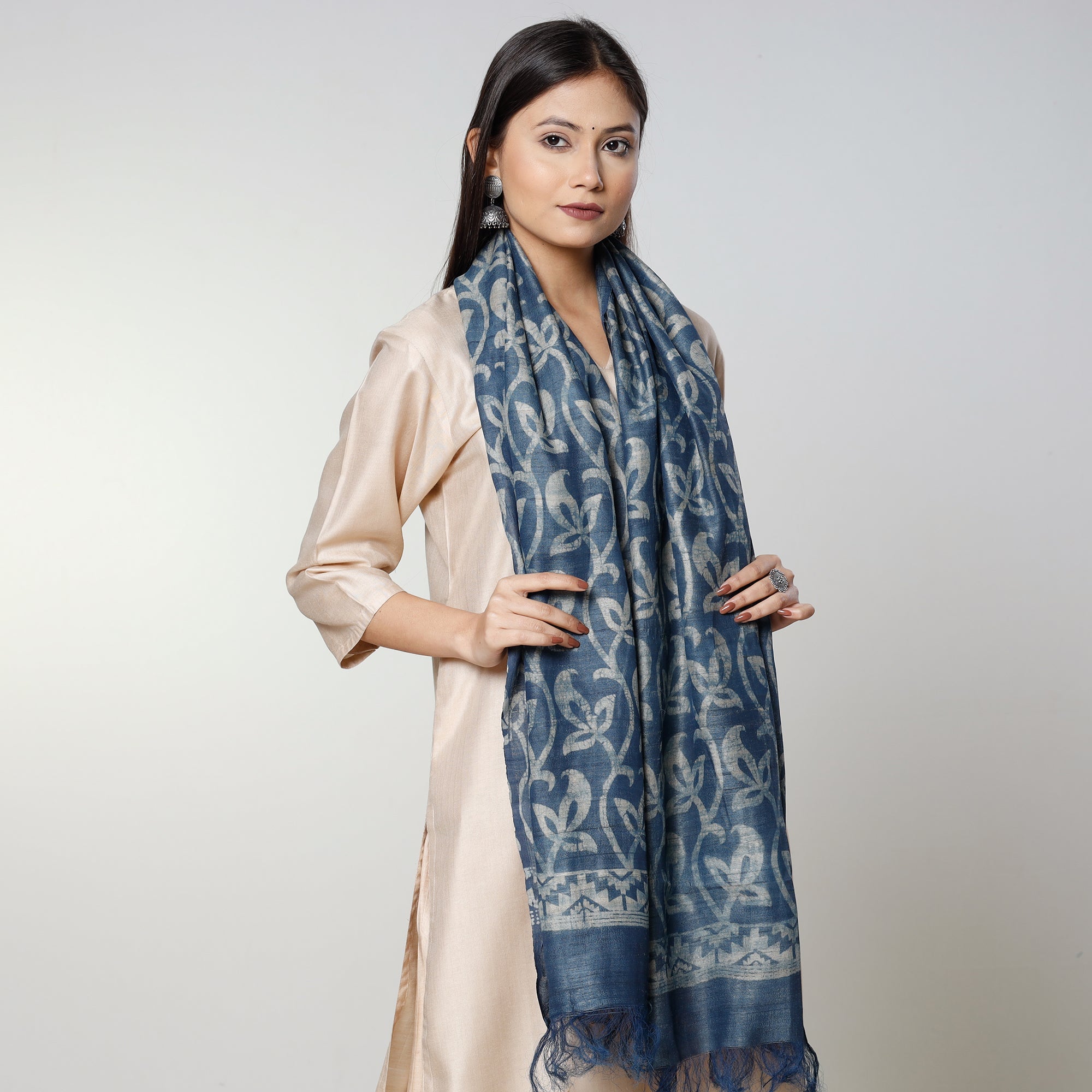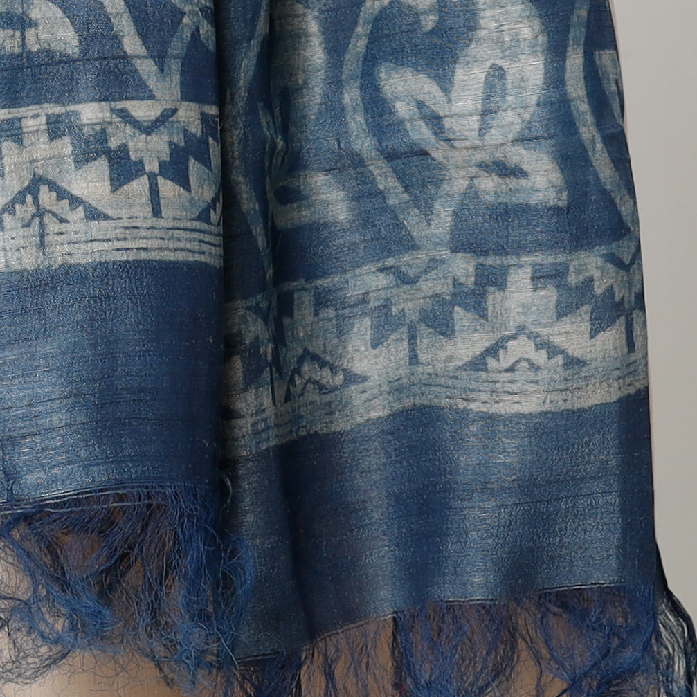 Blue - Handloom Block Art Print Tussar Silk Bindaas Stole