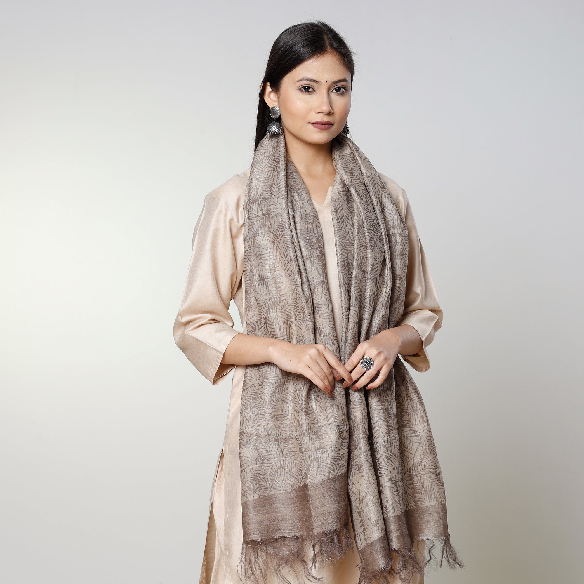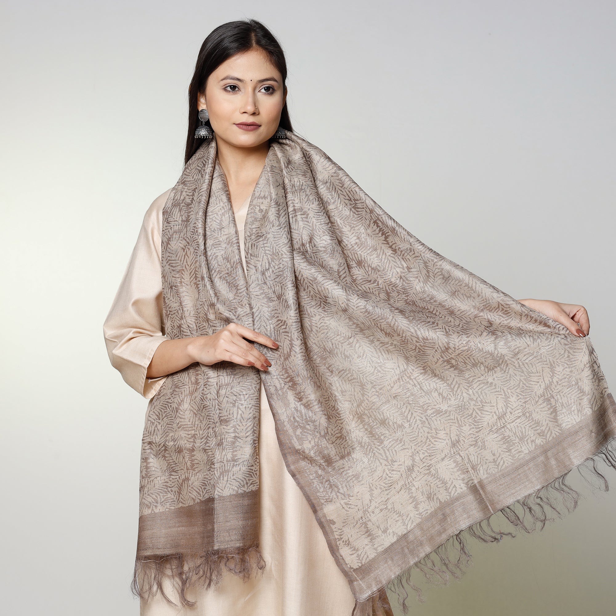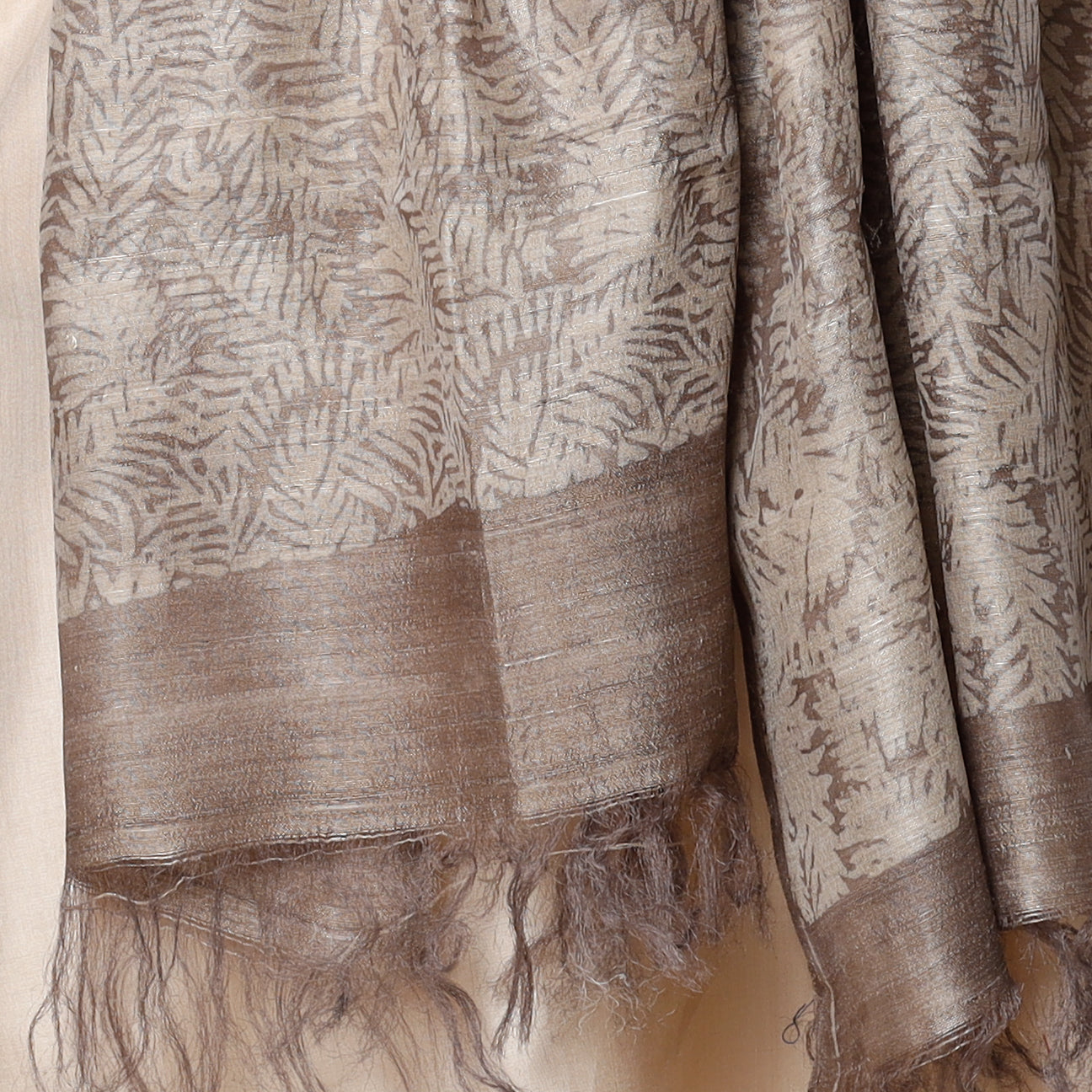 Beige - Handloom Block Art Print Tussar Silk Bindaas Stole