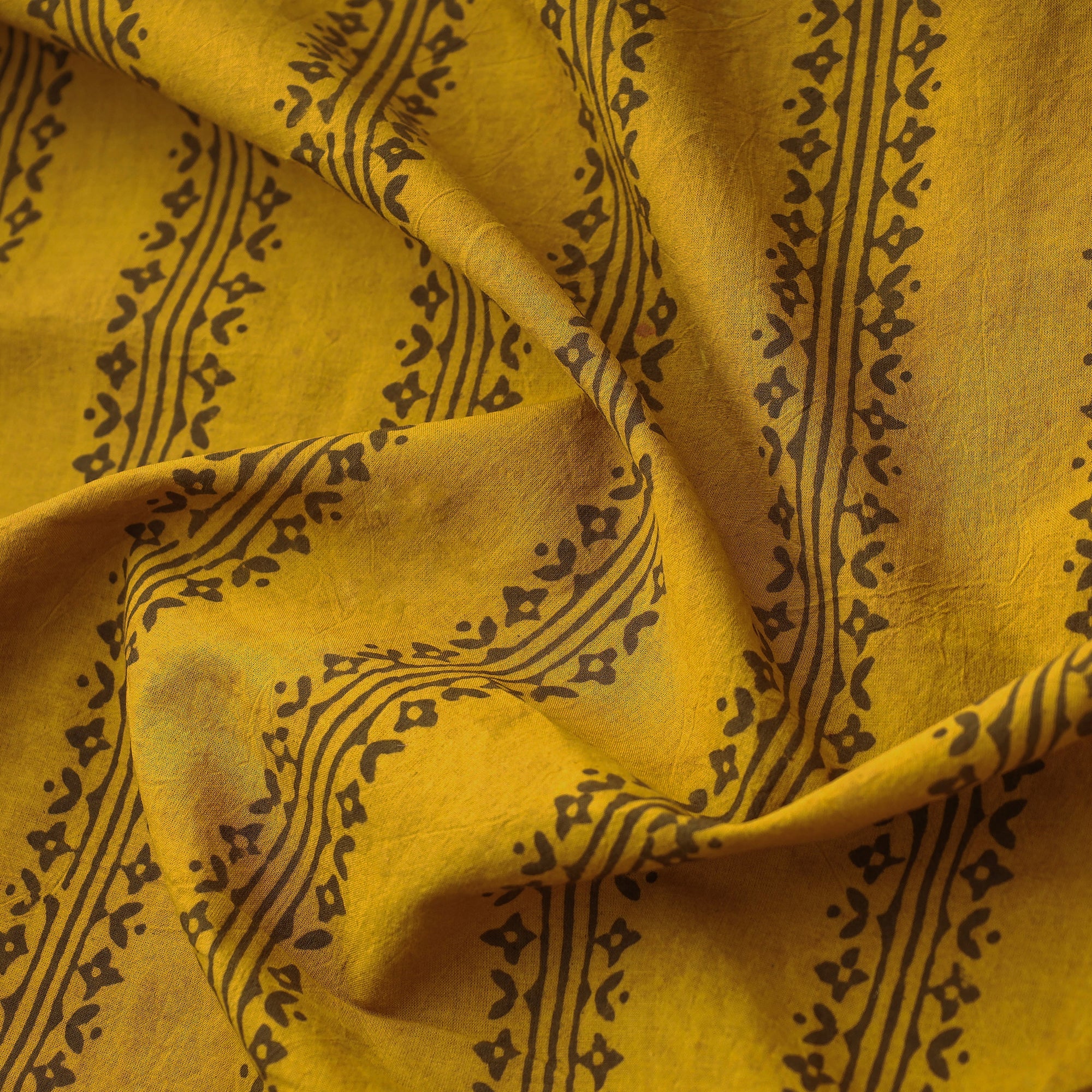 Fine quality ajrakh block printing cotton fabric, made using natural dyes through traditional ajrakh technique of hand-block printing practised by the artisans in Kutch region of Gujarat. Ajrakh is a traditional vegetable dyeing and resist block-printing technique on cloth. It is estimated to be around 4,500 years old. The Ajrakh artisans in India are originally from Sindh and they migrated to Kutch in Gujarat and Barmer in Rajasthan. Ajrakh is the traditional attire of the Maldhari pastoral community of Bhuj. The process of 'Ajrakh' is a long drawn process with many stages and each layer of colour is printed after a gap of time so the cloth has to stay for the day.