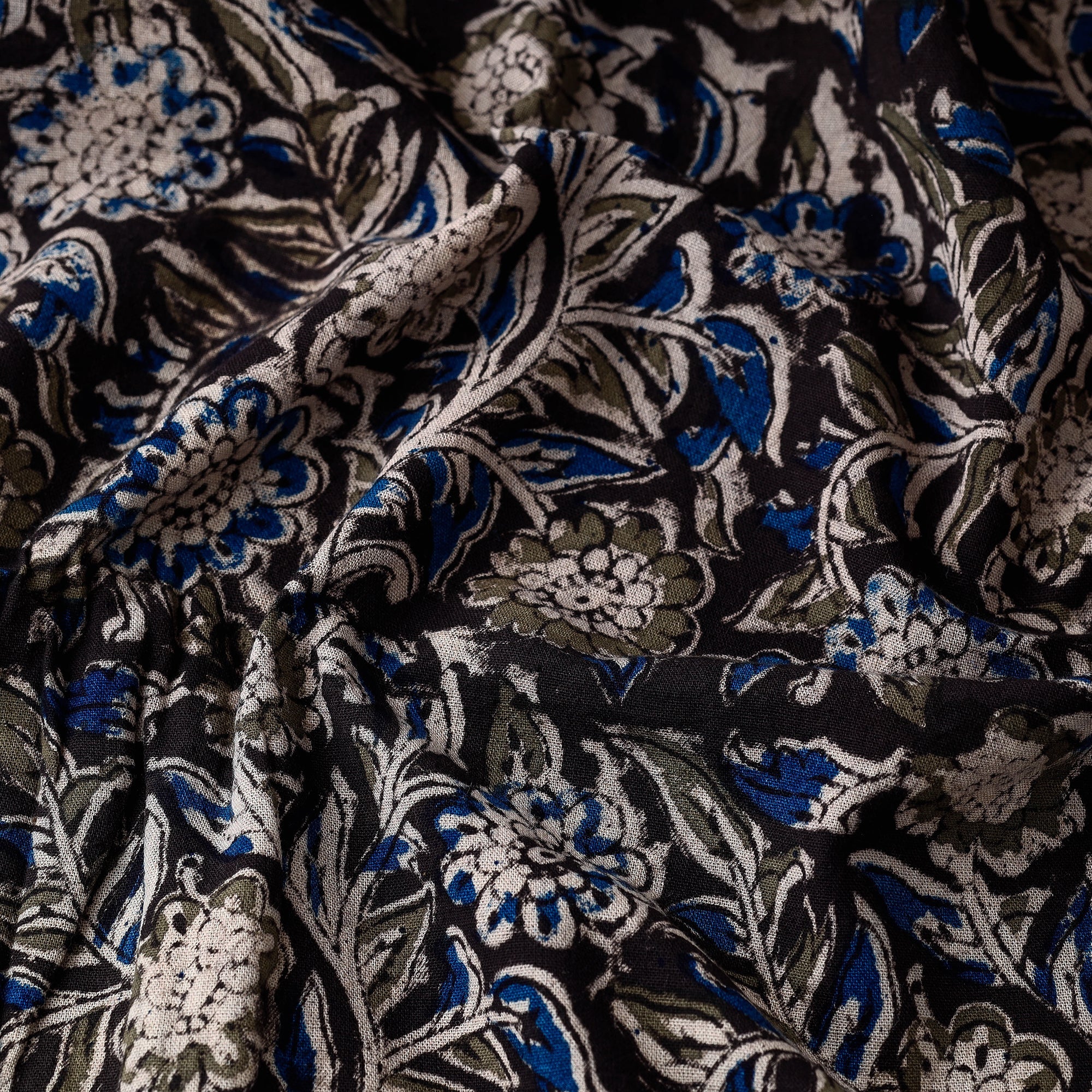 Fine quality kalamkari block printing cotton fabric made using natural dyes through traditional process of hand block printing practiced by the artisans of Tamil Nadu. Kalamkari is the earliest and more complex techniques of block-printing. Showcasing an assortment of hand block printed motifs inspired by traditional kalamkari painting.