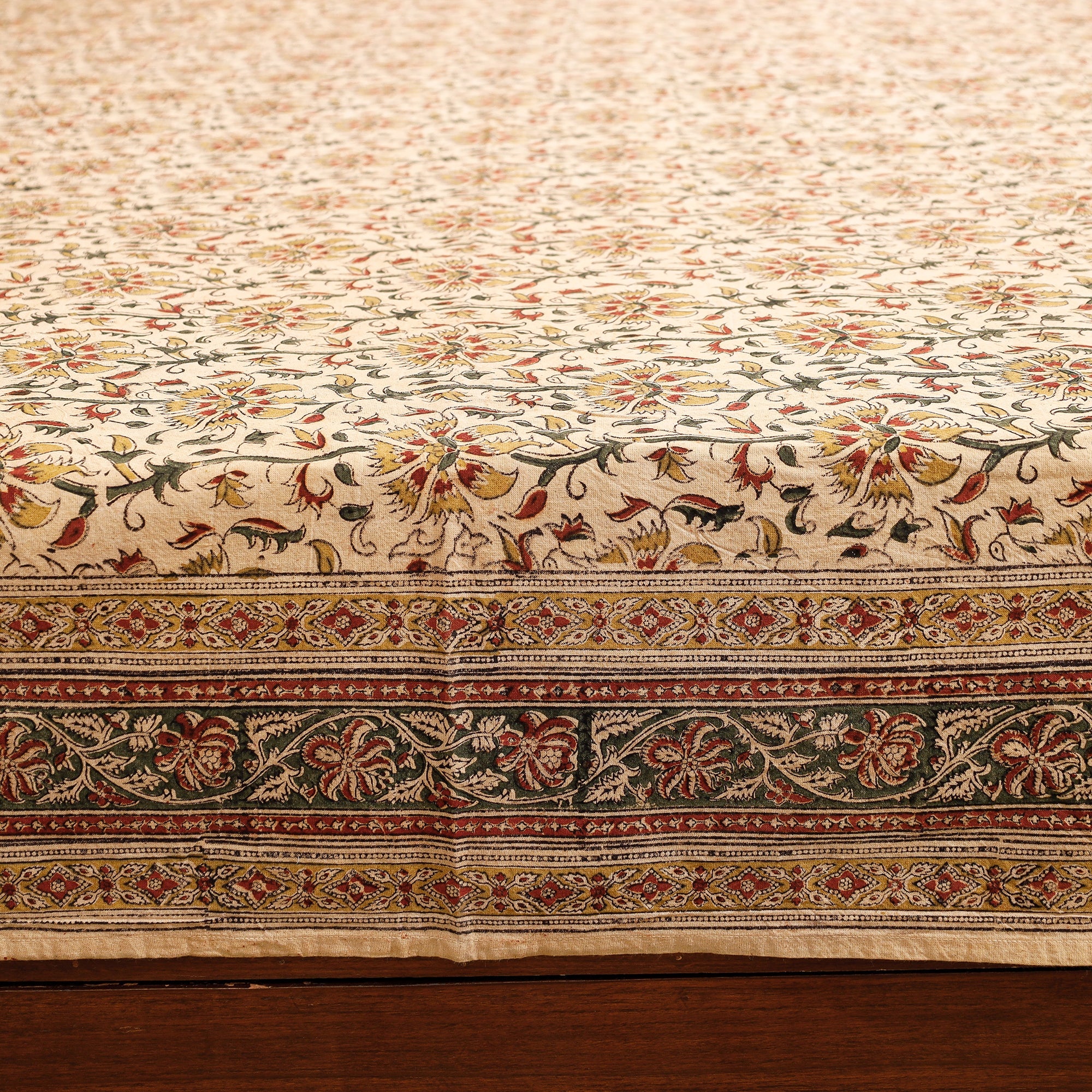 Fine quality brown kalamkari hand block printed natural dyedcotton double bed cover skillfully crafted by the artisans of Pedana. Showcasing an assortment of hand block printed motifs inspired by traditional kalamkari painting. Kalamkari is the earliest and more complex techniques of block-printing.