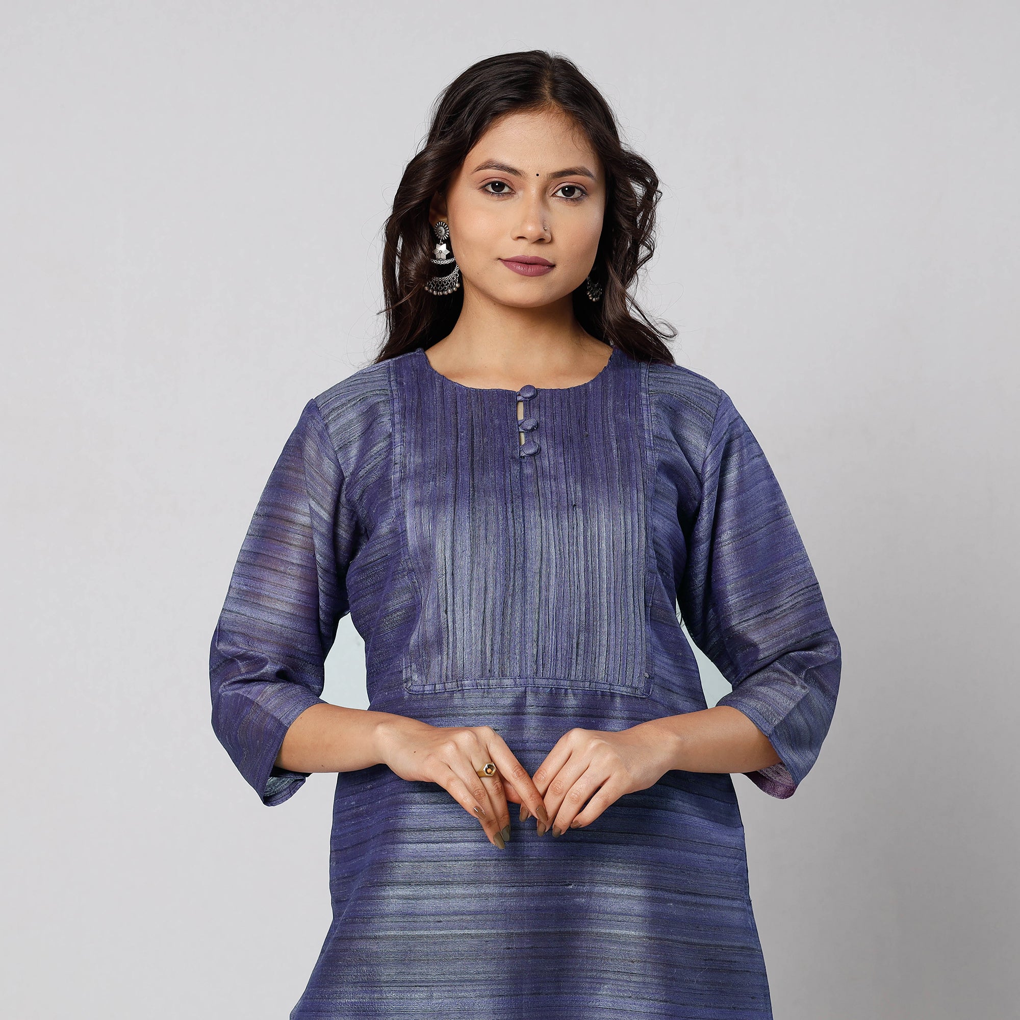 Look and feel beautiful in this uniquely designed pure desi tussar silk plain long Kurta with side pocket. This silk Kurta makes you comfortable with ease all day long. This Kurta is perfect for your daily outing and for a special occasion. Tussar silk is known for its unique texture, sheen of silk and feel of cotton A perfect blend of both worlds completely suitable for all weathers.
