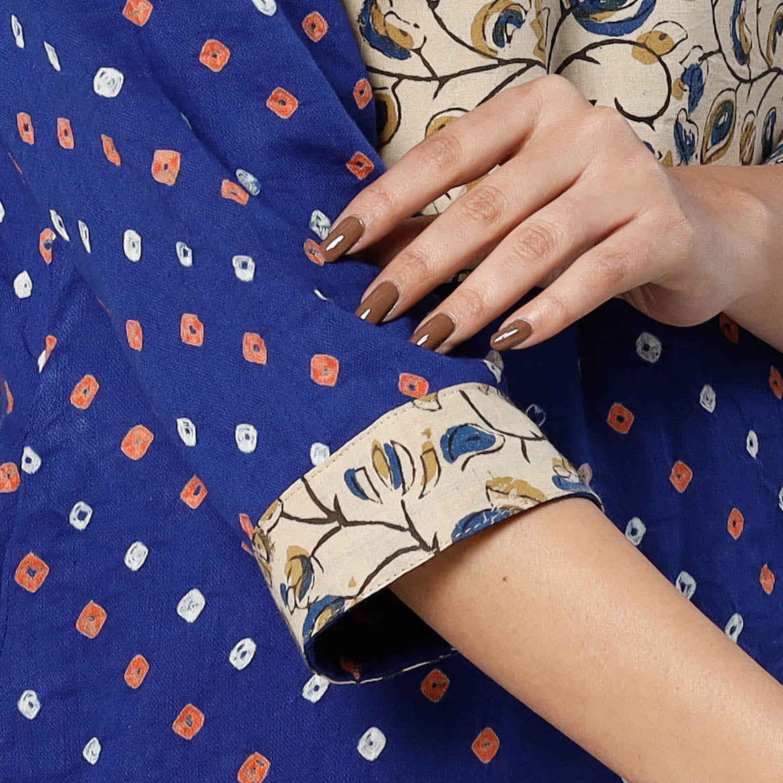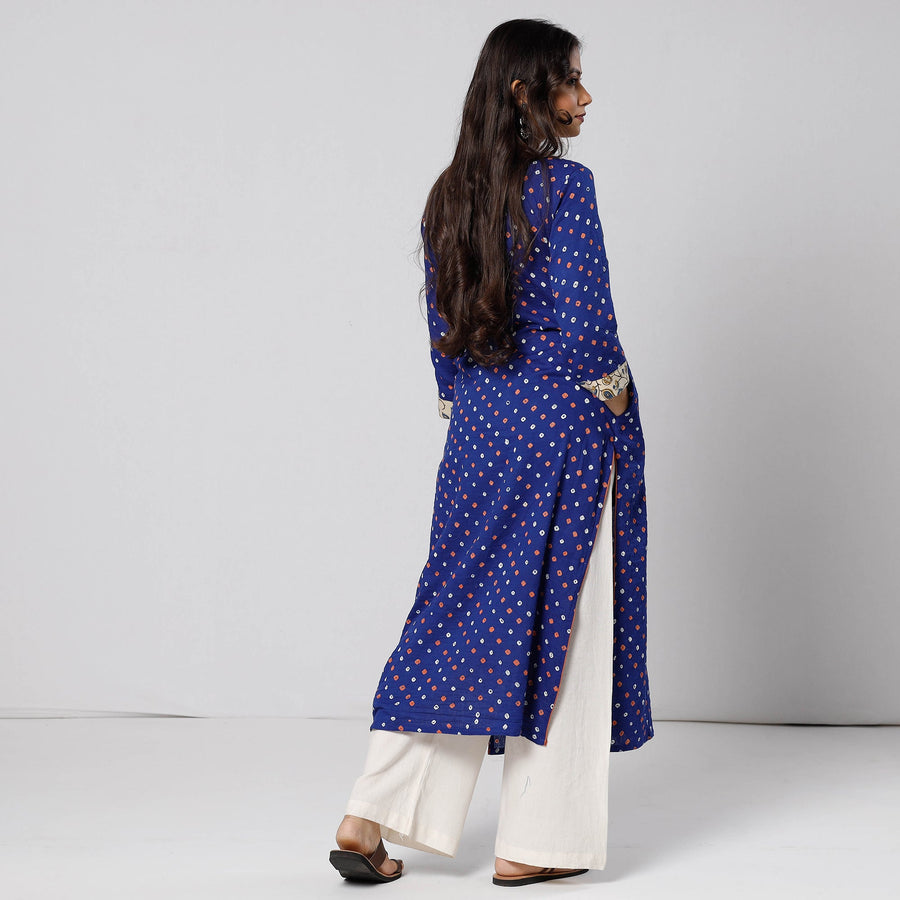 Look and feel beautiful in this uniquely designed bandhani tie-dye cotton long kurta with side pocket. This cotton kurta makes you comfortable with ease all day long. This kurta is perfect for your daily outing and for a special occasion. Bandhani is a tie-dye soft cotton fabric, featuring majestic bandhani pattern, tie & dyed using the traditional technique practised by skilled artisans and their families in Kutch. The art of Bandhani (Bandhej) is highly skilled process. The technique involves dyeing a fabric which is tied tightly with a thread at several points.
