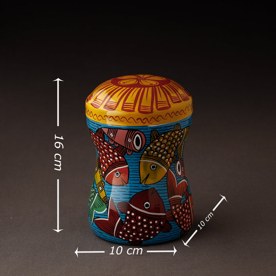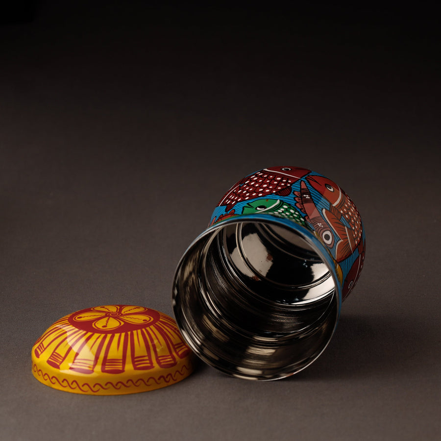 Blue patua hand-painted multi utility canister with waterproof oil based paint on very high quality stainless steel by the artisans of West Bengal .