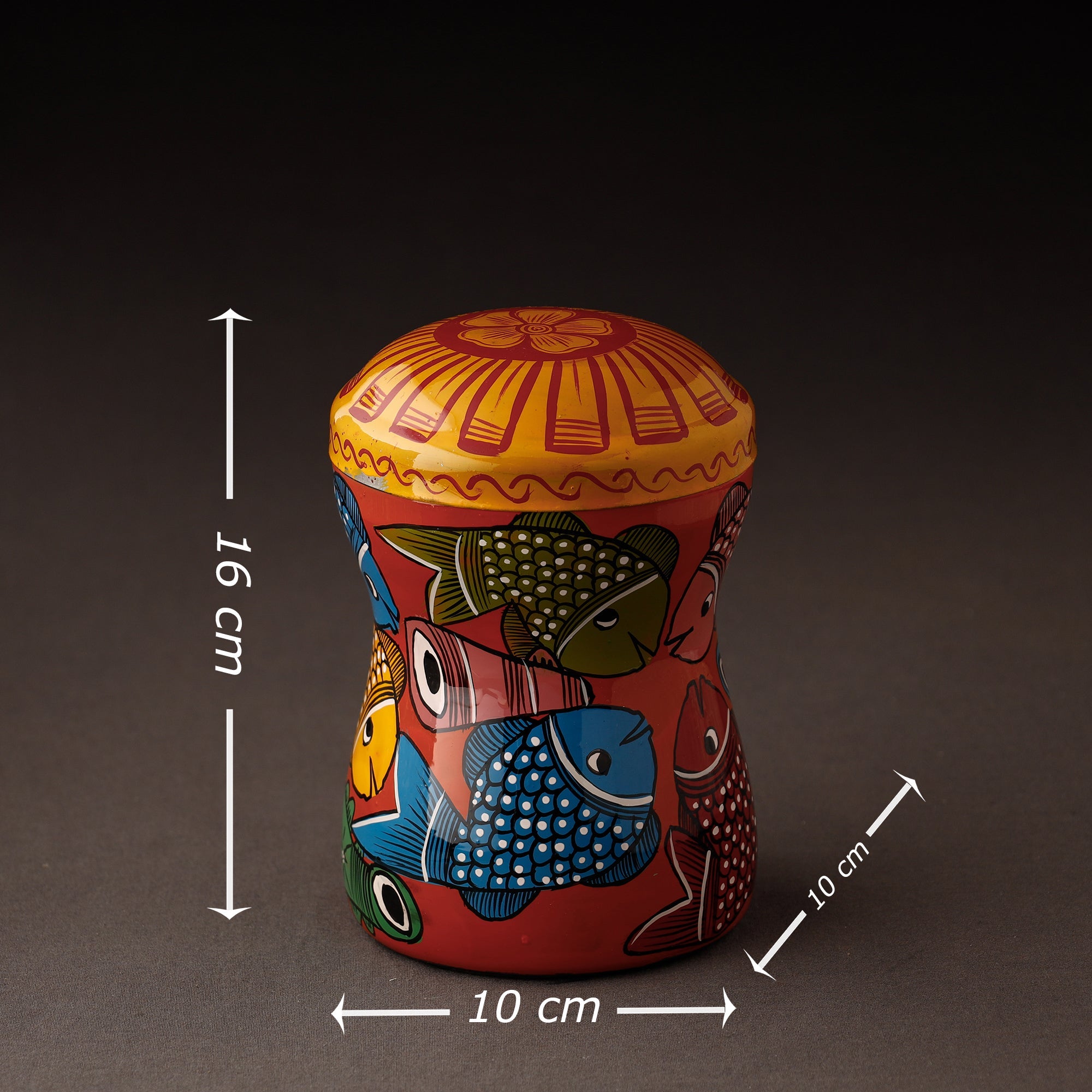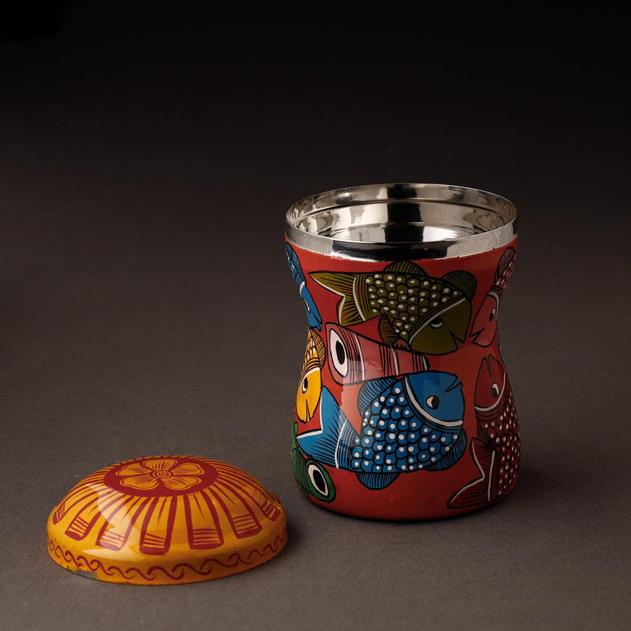 Red patua hand-painted multi utility canister with waterproof oil based paint on very high quality stainless steel by the artisans of West Bengal .