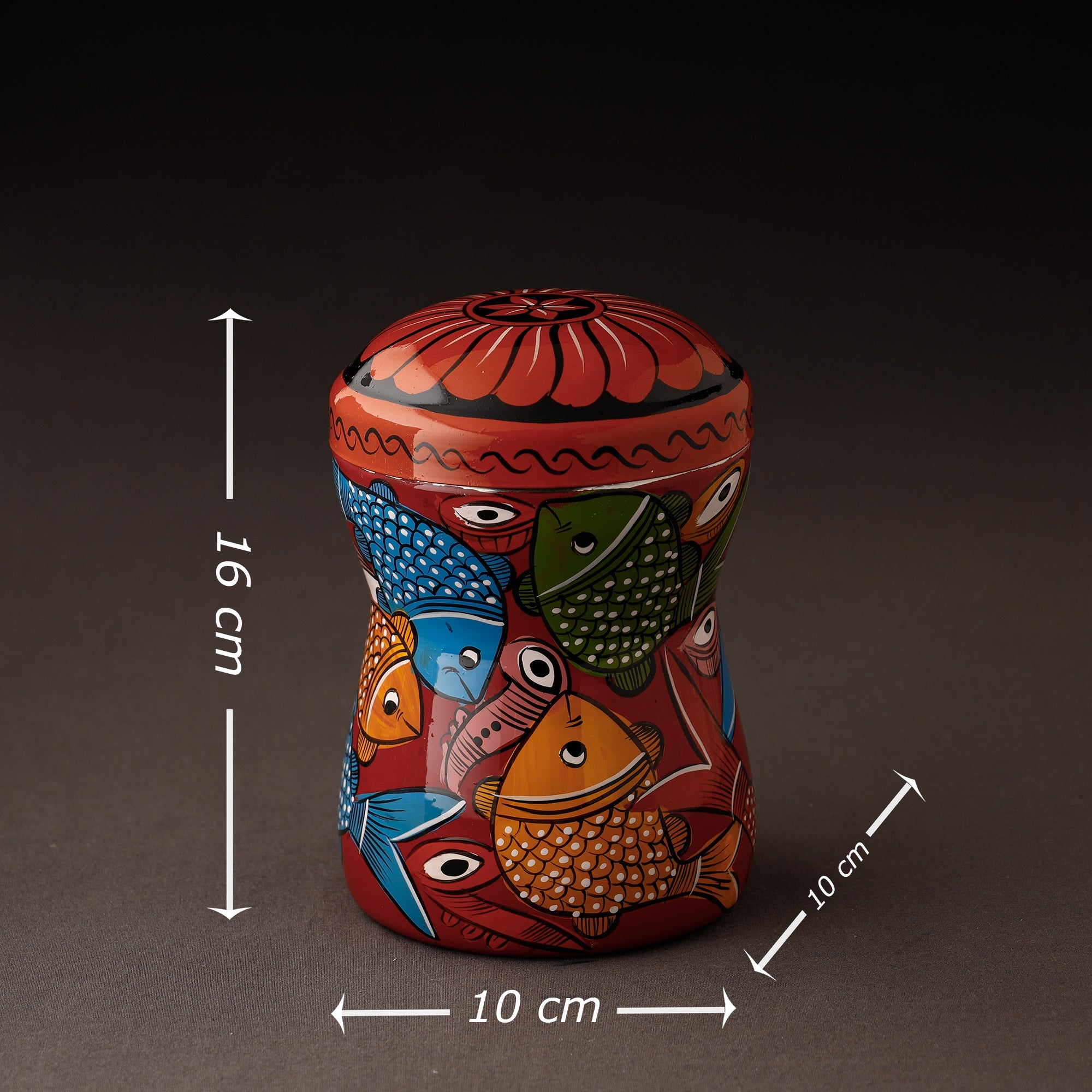 Red patua hand-painted multi utility canister with waterproof oil based paint on very high quality stainless steel by the artisans of West Bengal.