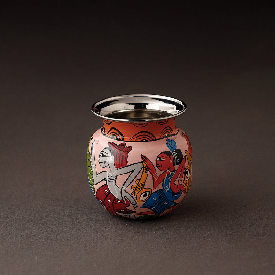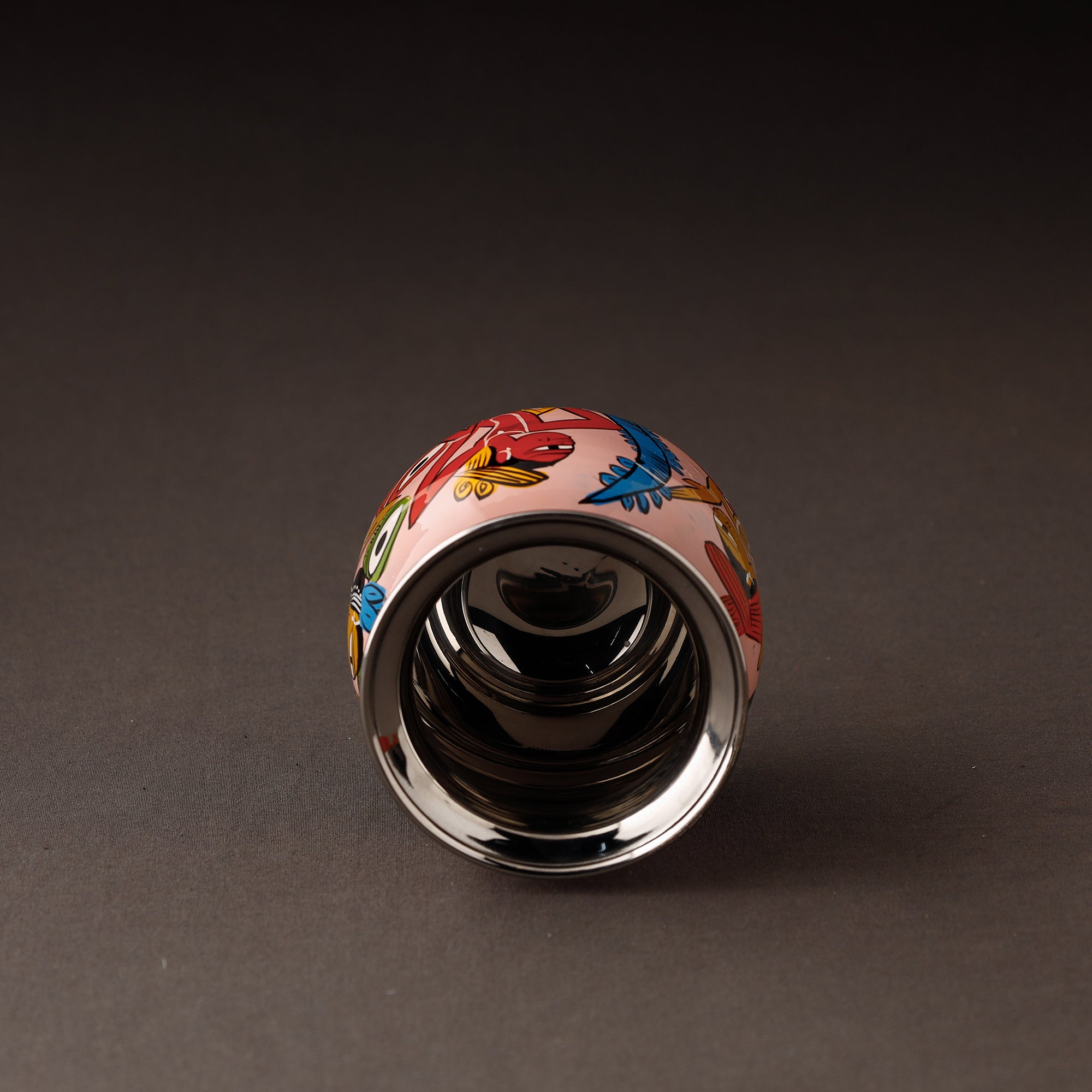 Pink patua hand-painted lota / pooja kalash with waterproof oil based paint on very high quality stainless steel by the artisans of West Bengal .