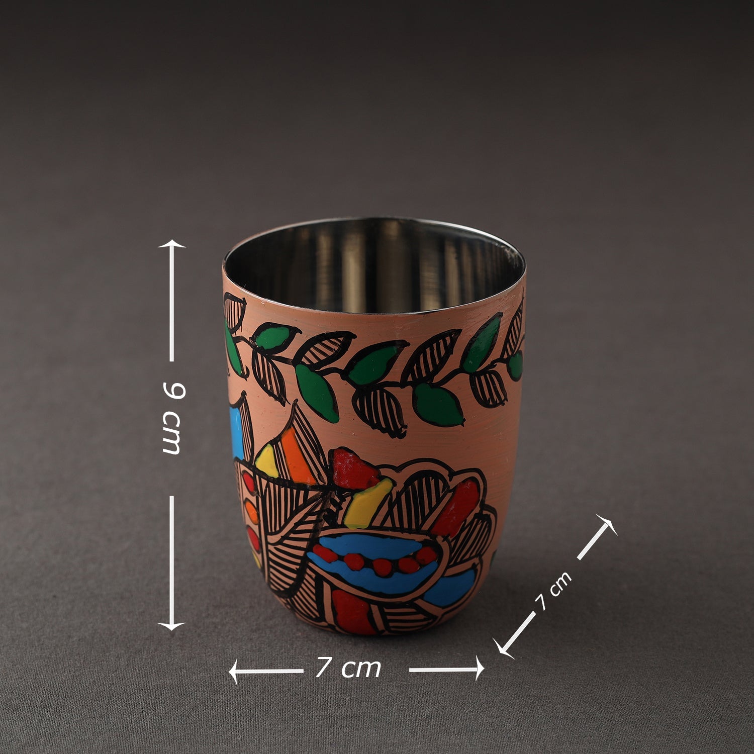 • Godna Madhubani Brown Handpainted Stainless Steel Glass