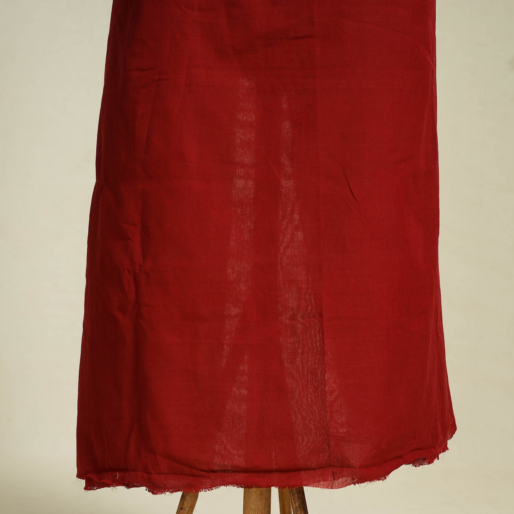 Handwoven maroon bhujodi weaving fine cotton 2pc mirror work suit material set made using azo free dye colours. The handloom experience (soft, comfortable and durable) is due to the human handling of the yarn in the weaving process. As a result, yarn and the fabric are much less stressed and damaged. Hand woven cotton is known for its breathability as compared to mill made cotton. This implies that it allows more air penetration making it cooler, softer and more absorbent. It keeps you cooler in summers and warm in winters.