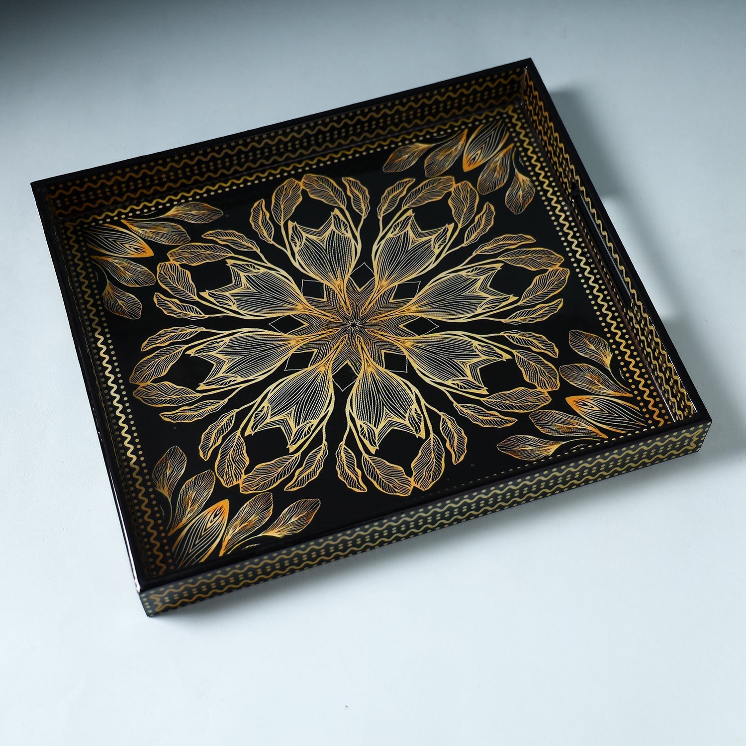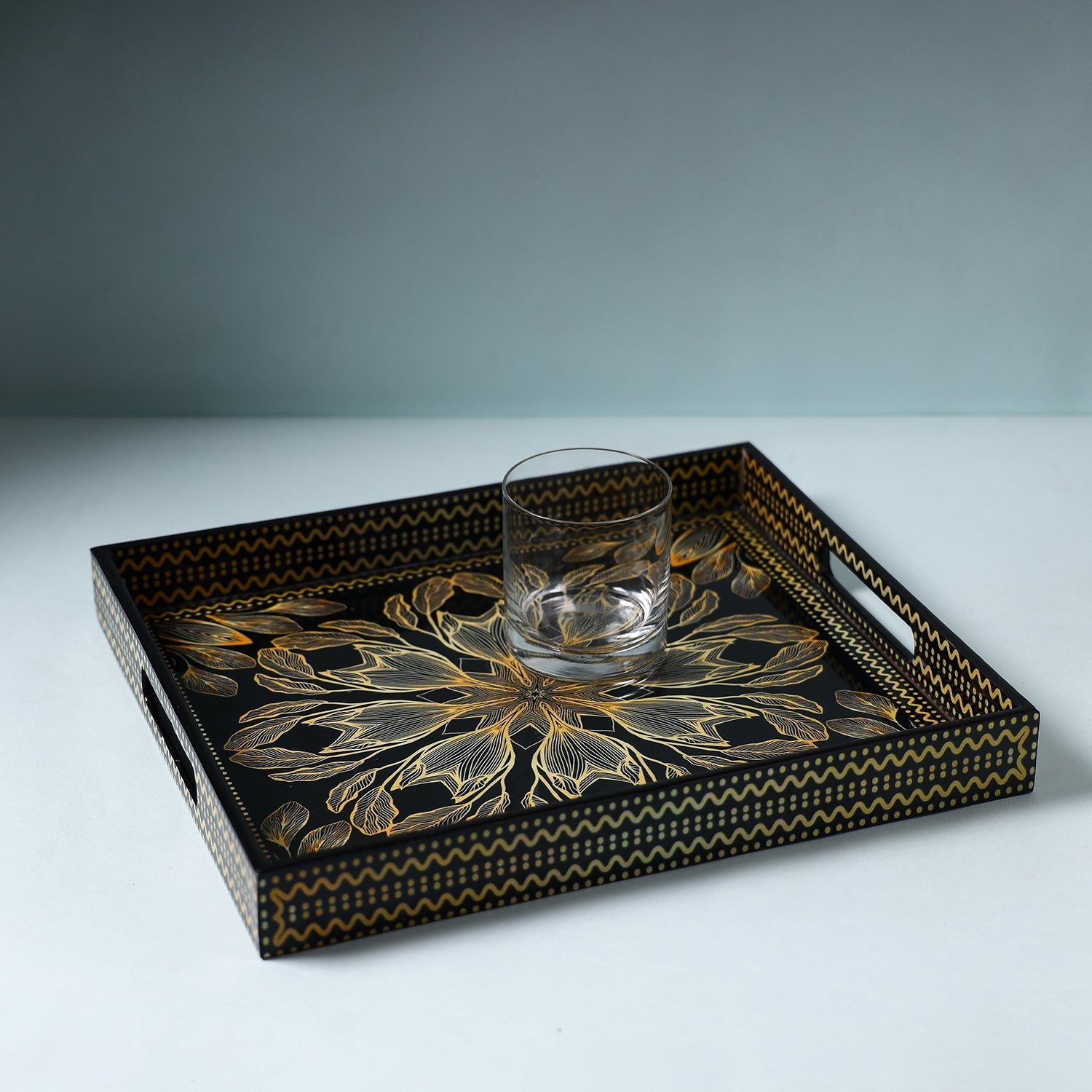 This handcrafted black wooden tray is made by skilled artisans from mdf wood and epoxy resin glue. Epoxy resin (non-toxic), which is a permanent, waterproof adhesive. This tray is perfect for holding hot or cold containers and makes a wonderful addition to your kitchen, dining room, or party hosting tableware set. A unique gift item too.