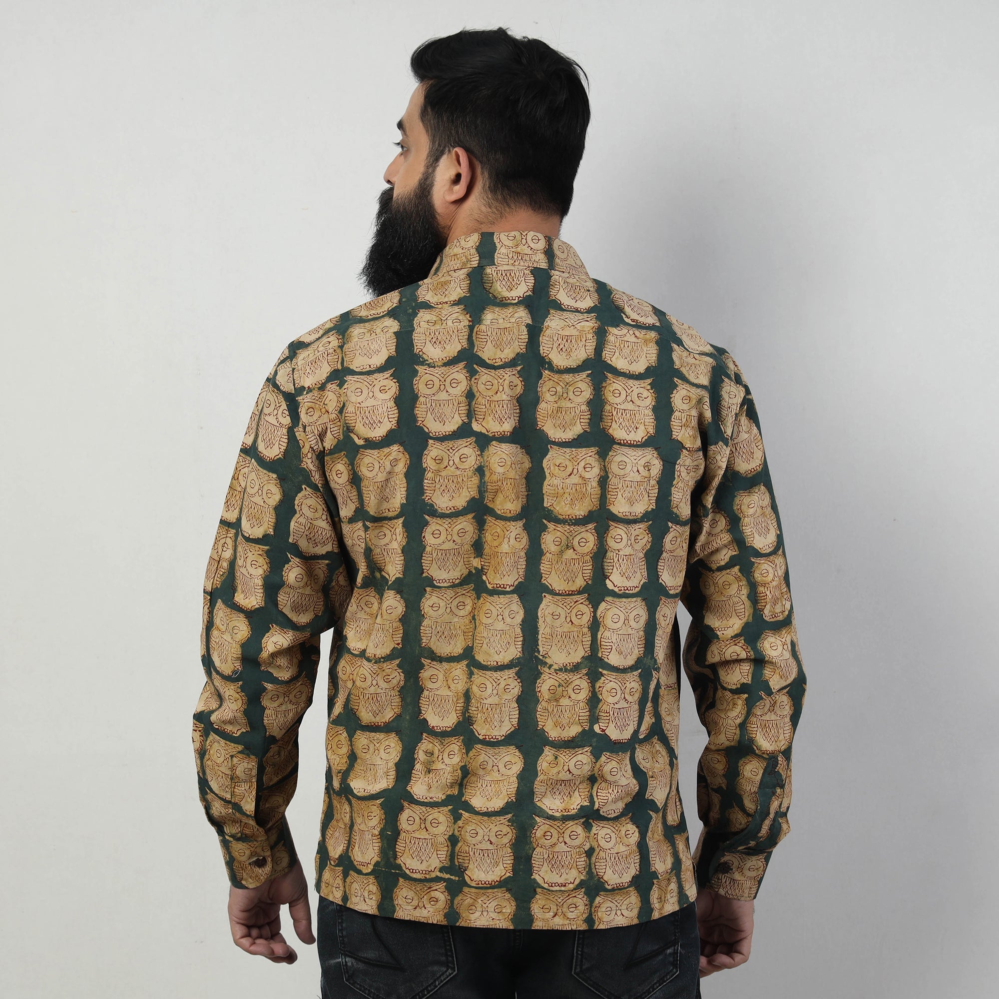 Special Bindaas Unlimited! hand art block printed, pure cotton, naturally dyed shirt for men. This shirt comes with a regular collar and full sleeves. Contemporary designs are made through traditional processes by skilled fourth-generation textile printers in Rajasthan. This slow-fashion, hand block printed cotton shirt reintroduces traditional skills while maintaining a modern aesthetic and design. To make these shirts, it takes: a 100-year-old technique; 15–22 processes; 25–40 pairs of hands; 65 hours spread over at least 12 days; and a lot of sun and sand!