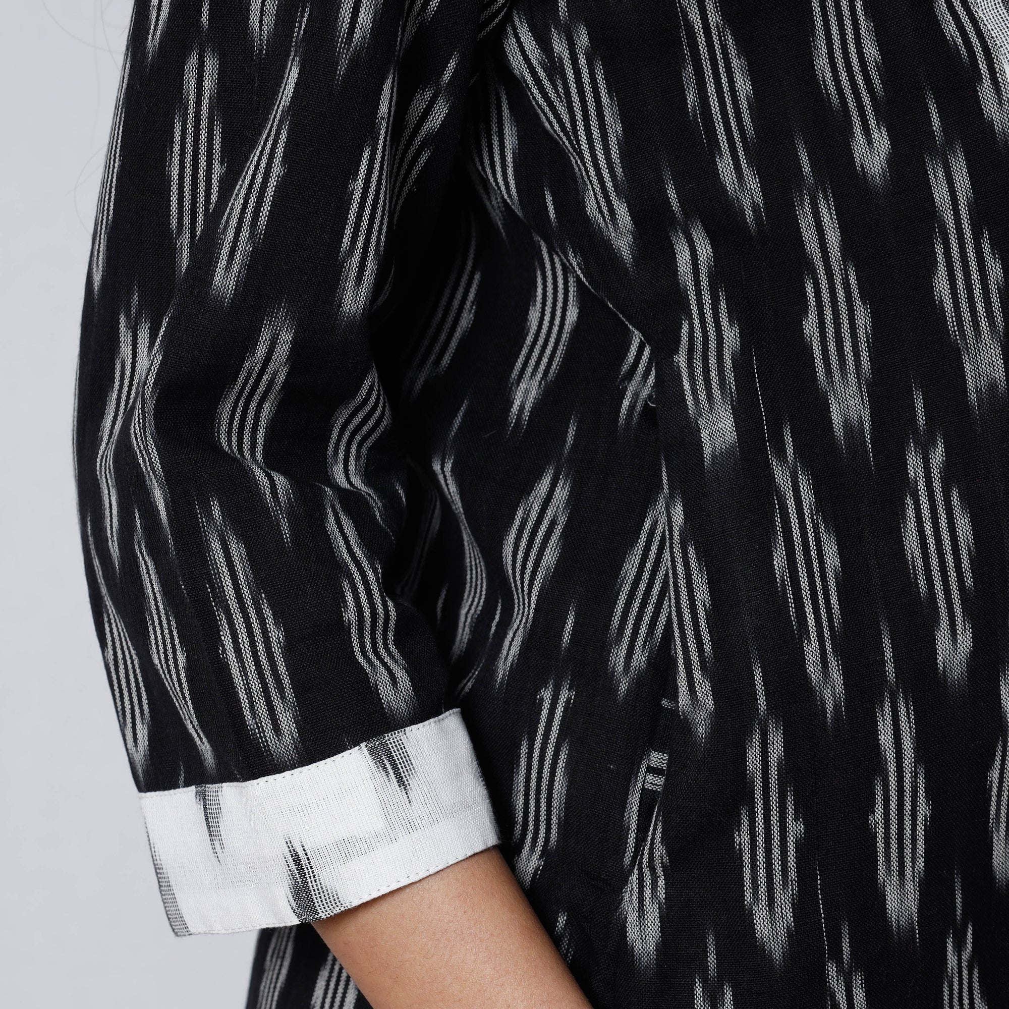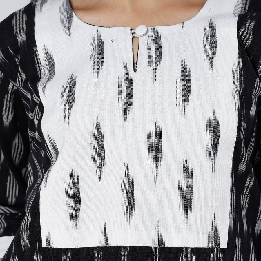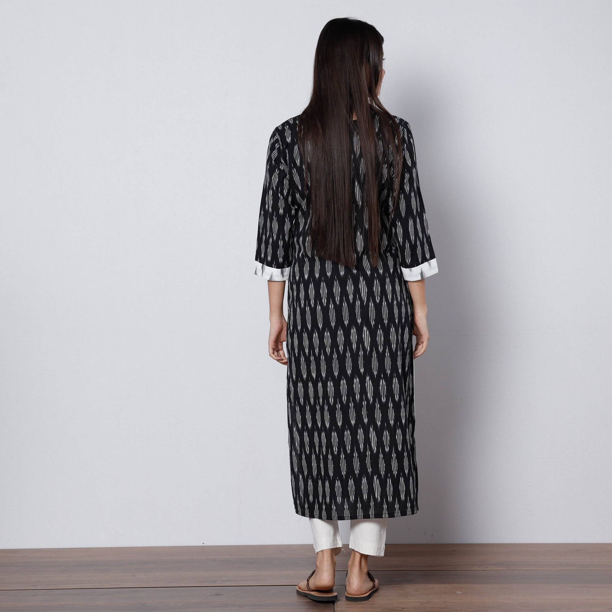 Look and feel beautiful in this uniquely designed pochampally ikat weave cotton long kurta with side pocket. This cotton kurta makes you comfortable with ease all day long. Ikat has lovely patterns in extremely beautiful colours. Ikat fabrics are world famous for their colours, texture and designs. Indian Ikat is one of the fabrics that is always admired by the fashion designers around the world.