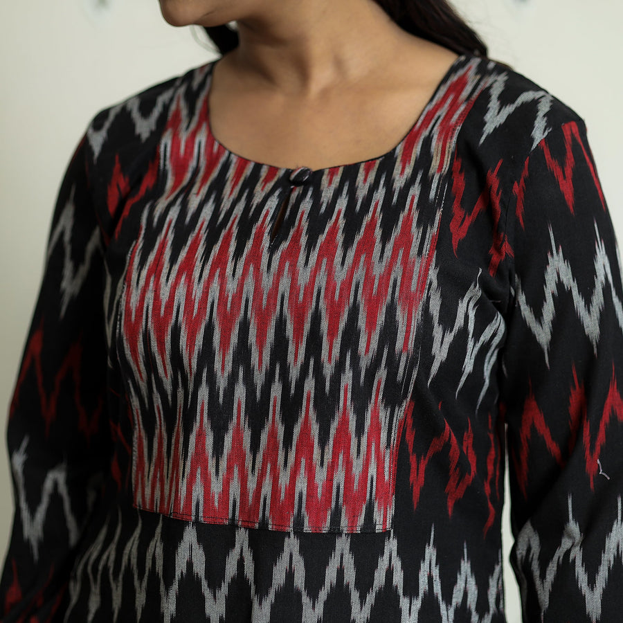 Look and feel beautiful in this uniquely designed pochampally ikat weave cotton long Kurta with side pocket. This cotton Kurta makes you comfortable with ease all day long. Ikat has lovely patterns in extremely beautiful colours. Ikat fabrics are world famous for their colours, texture and designs. Indian Ikat is one of the fabrics that is always admired by the fashion designers around the world.