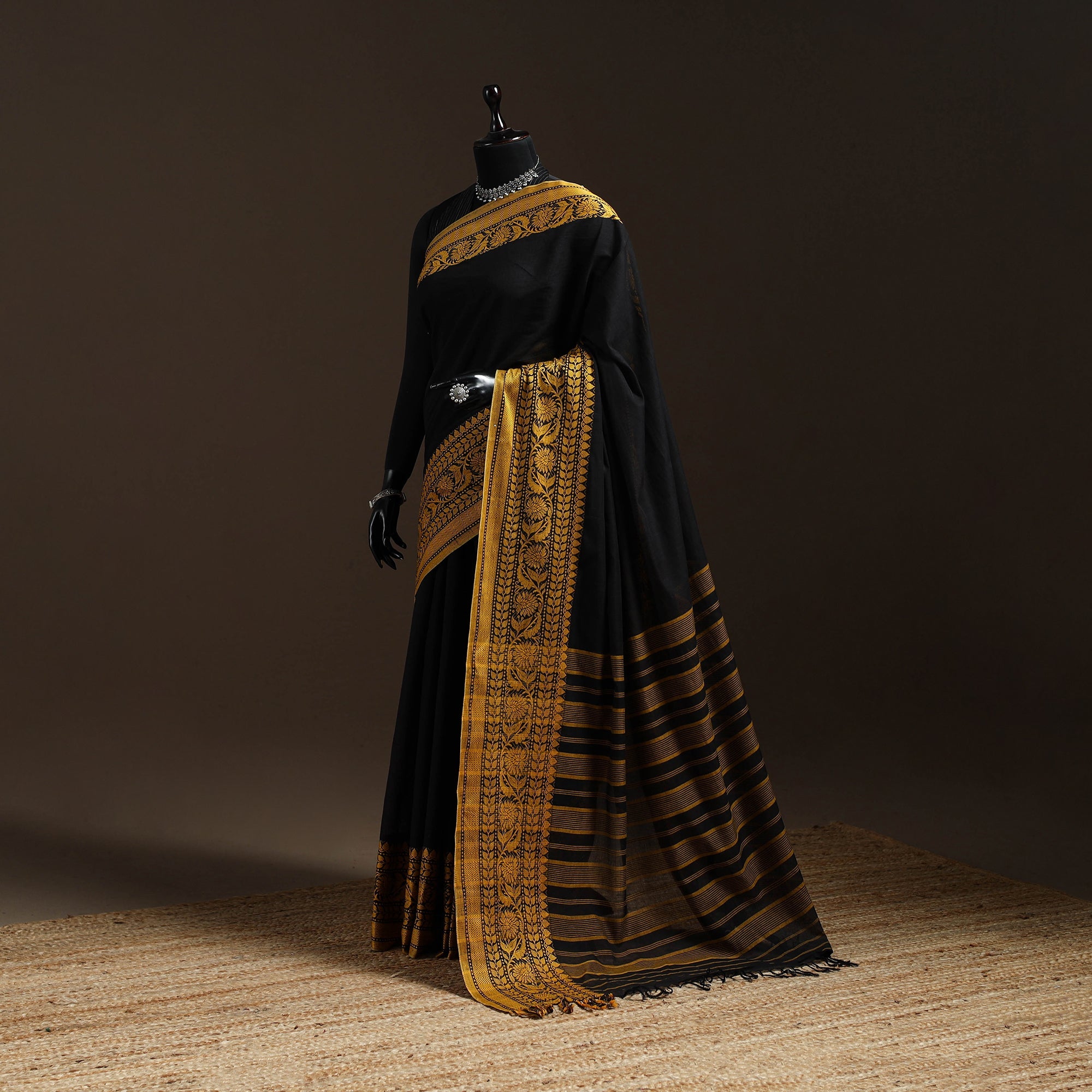 Black - Bengal Handwoven Cotton Begumpuri Saree 32